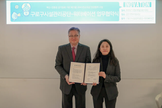 워터베이션은 구로시설관리공단과 역내 공공시설 실내 공기질 개선과 환경폐기물 저감, 공기취약계층 보호를 위한 공기세척장치 현장 실증을 위한 업무협약(MOU)을 체결했다고 9일 밝혔다. 이번 협약은 워터베이션이 보유한 물 기반 필터리스(WVG) 공기세척 기술을 공공시설에 실증 적용하고, 그 성능과 친환경 효과를 검증하여 시범구매 및 공공구매로 이어지는 민관협력형 ESG 혁신 프로젝트 일환으로 시행됐다. 워터베이션과 공단은 내년 상반기 공단 산하 다중이용시설에서 공기세척장치 실증을 진행할 예정이다. 실증 결과를 기반으로 ▲공공시설 실내 공기질 개선 ▲필터 폐기물 발생 제로 실현 ▲탄소배출 저감 효과 검증 ▲취약계층 대상 안심 공기질 관리 솔루션 확대 등을 목표로 공공분야 도입 및 구매 확산을 단계적으로 추진한다. 워터베이션의 핵심 기술인 워터볼륨그리드(WVG) 공법은 미세 물입자를 세절·분사해 오염물질과 유해가스를 물로 직접 세척하는 방식이다. 필터 사용에서 발생하는 화학물질 위험성과 폐필터 쓰레기 문제를 근본적으로 제거한다. 워터베이션은 현재 필터리스 기술을 기반으로 ▲산업용 유해가스 습식 세정장치 ▲공조·환기용 공기세척 모듈 ▲실내용 공기세척장치 등을 개발하고 있다. 실내형 장치는 내년 상반기 출시를 앞두고 있다. 정윤영 워터베이션 대표는 "공기세척기술이 공공시장 전반으로 확산될 수 있도록 실증-시범구매-공공구매로 이어지는 구조를 만들겠다"라며 "필터 폐기물 없는 물 기반 공기세척 기술을 바탕으로 공기취약계층 보호와 탄소중립 실천에 기여하고, 공공시설의 ESG 전환을 앞당기겠다"고 말했다.