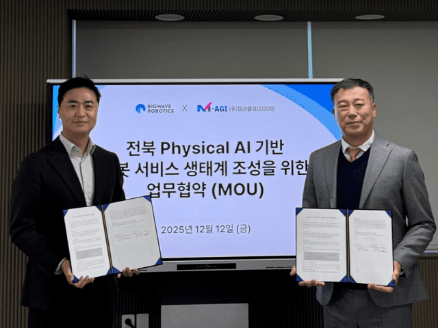 로봇 서비스(RaaS) 기업 빅웨이브로보틱스는 피지컬 AI 교육 및 지역 사업 특화 기업 미라클에이지아이와 전라도 지역 중심 로봇 서비스 사업 전개 및 피지컬 AI 기반 생태계 조성을 위한 포괄적 업무협약(MOU)을 체결했다고 15일 밝혔다. 양사는 단순한 로봇 공급을 넘어 '피지컬 AI 기반 사업 모델의 지역 단위 확산'이라는 공동 목표를 설정하고 실질적인 협력 체계를 구축했다. 빅웨이브는 실제 산업 현장 내 로봇의 안정적 도입과 지능형 통합 관제 환경 구축을 주도적으로 지원한다. 또한 피지컬 AI 교육에 필수적인 교육·실습용 로봇 일체를 공급한다. 미라클에이지아이는 로봇 서비스 사업 전개를 위한 전진 기지 역할을 수행한다. 피지컬 AI 및 로봇 서비스 분야에 특화된 교육과정을 기획·운영하며 현장 수요에 즉시 투입 가능한 지역 내 전문 인력을 양성한다. 이후 양사는 전북대학교 피지컬AI융합기술사업추진단과 협력해 전북 지역 특화형 피지컬 AI 선도 모델을 공동으로 수립하고 실증(PoC) 사업을 연계해 나갈 예정이다. 이를 통해 전북 지역을 전국적인 피지컬 AI 기술과 산업을 선도하는 핵심 거점으로 자리매김시키고, 현장 실증과 산업 연계를 기반으로 한 지속 가능한 사업 모델 구축에 지속적으로 협력할 방침이다. 김민교 빅웨이브로보틱스 대표는 "이번 협약은 피지컬 AI 기반 사업 모델의 지역 단위 성공 공식을 확립하는 의미 있는 출발점"이라며 "현장 중심의 실증과 사업화를 통해 로봇 서비스의 실질적 활용 가치와 수익성을 높여 나가겠다"고 밝혔다. 강현신 미라클에이지아이 대표는 "전라도 지역을 중심으로 로봇 서비스와 피지컬 AI 교육을 연계한 협력 체계를 구축하게 되어 뜻깊다"며 "현장 수요에 기반한 사업 전개와 전문 인력 양성을 통해 지역 로봇 산업 경쟁력 강화에 기여하겠다"고 말했다.