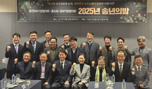 "소프트웨어는 공기와 같아서 평소엔 그 소중함을 모르지만, 문제가 생기면 그때야 깨닫습니다. 공기가 생명 유지에 필수적이듯 SW는 산업의 생명줄입니다. SW가 '비싼 값'을 하는 만큼, 제값을 받는 환경을 만들겠습니다." 조국혁신당 이해민 의원이 10일 열린 서울 마포구 서울가든호텔에서 열린 '2025년 중견-중소SW기업협의회 송년의 밤' 행사에서 SW의 가치를 '공기'와 '비싼 자원'에 비유하며 산업 생태계의 질적 성장을 위한 입법 활동을 약속했다. 이날 행사에는 국회 과학기술정보방송통신위원회(이하 과방위) 소속 더불어민주당 조인철 의원, 조국혁신당 이해민 의원을 비롯해 정부 및 업계 관계자 20여 명이 참석해 성황을 이뤘다. 이해민 의원은 "IT 업계 출신으로서의 자아와 입법부 일원으로서의 자아가 섞여 있다"고 운을 떼며 "소프트웨어는 한번 만들고 끝나는 물건이 아니라 지속적인 관리가 필요한 고부가가치 영역이므로, 그에 합당한 '비싼 값'을 치러야 한다"고 강조했다. 특히 그는 "정부가 화려해 보이는 AI 사업에만 몰두할 때, 실제 그 기술을 실핏줄처럼 현장에 적용하는 것은 여기 계신 중견·중소 기업들의 몫"이라며 "SW 기업들이 공정한 대가를 받을 수 있도록 '소프트웨어 적정 절차 선정 법안' 등 관련 입법을 지속 추진하겠다"고 밝혔다. 이어 더불어민주당 조인철 의원은 기획재정부 예산실 출신의 경험을 살려 공공부문의 불합리한 발주 관행을 꼬집었다. 조 의원은 "공공사업 진행 중 과업이 변경되어도 예산은 그대로인 경우가 많아 기업들이 '울며 겨자 먹기'로 손해를 감수하거나 소송으로 내몰리고 있다"며 "공공부문이 먼저 모범을 보여야 하며, 국회 차원에서 이러한 불공정한 관행을 하나하나 찾아 없애겠다"고 강조해 참석 기업인들의 큰 호응을 얻었다. 또한 국회 과방위 야당 간사인 더불어민주당 김현 의원과 이정헌 의원도 영상 축사를 보내왔다. 김현 의원은 "어려운 환경 속에서도 혁신을 멈추지 않은 기업인들의 노고"를 치하했고, 이정헌 의원은 "AI 시대를 움직이는 근본 동력인 SW 산업에 대한 지속적인 지원"을 약속했다. 행사를 주최한 김상욱 중견SW기업협의회 회장과 조미리애 중소SI·SW기업협의회 회장은 "국회와 정부가 현장의 목소리에 귀 기울여주신 점에 감사드린다"며 "우리 협의회도 내년에는 더욱 단합하여 SW 산업이 국가 경쟁력의 핵심으로 자리 잡도록 노력하겠다"고 화답했다. 이 밖에도 조경래 과학기술정보통신부 소프트웨어산업과장, 최효근 한국IT서비스산업협회 상근부회장을 비롯해 최현택 대신정보통신 대표, 신장호 아이티센엔텍 대표, 서일종 시스원 대표 등 주요 인사들이 참석해 2026년 도약을 위한 결의를 다졌다.