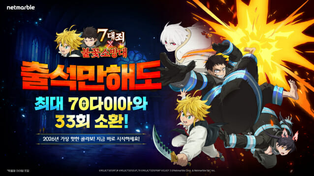 넷마블(대표 김병규)은 모바일 RPG '일곱 개의 대죄: 그랜드 크로스'(이하 일곱 개의 대죄: 그랜드 크로스)에 '불꽃 소방대' 협업 업데이트를 실시했다고 29일 밝혔다. 불꽃 소방대는 '인체 발화 현상'이라는 수수께끼를 풀고 인류를 구원하는 특수소방대 이야기를 담은 TV 애니메이션이다. 이번 업데이트를 통해 불꽃 소방대 캐릭터 '불꽃의 히어로' 신라 쿠사카베, '홍염의 네코마타' 타마키 코타츠, '얼어붙은 시간' 쇼우 쿠사카베 3종이 추가됐다. 주인공인 '신라 쿠사카베'는 아군이 받는 피해를 줄이고 적군을 추방해 전투 흐름을 바꿀 수 있다. 이 외에도 '전사의 전당' 단계를 30층까지 확장하고, 완료 시 스쿨드 코스튬이 지급된다. 업데이트 기념 픽업 소환 이벤트가 진행된다. 이용자는 600 마일리지 달성 시 신규 콜라보 영웅 중 1종을 선택해 획득할 수 있다. 또 출석 이벤트는 3일 동안 콜라보 소환 티켓 최대 30장을, 14일동안 다이아 최대 70개을 제공한다. 스페셜 미션 이벤트는 7개의 미션을 완료하면 성장 재료, 타마키 코타츠 의상 코스튬을 준다. 뿐만 아니라 오는 6월까지 진행되는 '777 릴레이 캠페인' 두번째 혜택이 공개됐다. 멀린&에스카노르 코스튬, 코스튬 강화 재료 쿠폰과 더불어 마일리지 보상을 강화해 60·180·450 마일리지 달성 시 '불꽃소방대 장비 보급품 상자' 선물 등 총 7개의 혜택이 마련됐다. 이 외에도 주인공 신라 쿠사카베의 동생 '쇼우 쿠사카베'가 이벤트 보스로 등장하는 콜라보 이벤트 보스전이 추가됐다. 이용자는 보스를 처치하고 재화를 얻어 콜라보 성물 재료 상자, 타마키 코타츠의 뷰티 코스튬 등 다양한 보상으로 교환 가능하다. 익스트림 난이도 15회 이상 클리어 시 콜라보 칭호 '아도라를 잇는 자'를 얻을 수 있다.