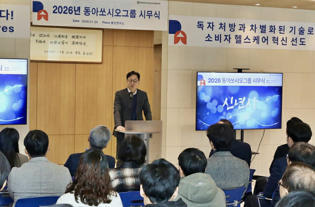 동아쏘시오그룹이 실질적인 R&D 성과를 통해 글로벌 헬스케어 기업으로 도약하겠다는 목표를 밝혔다. 동아쏘시오그룹은 5일 경기도 용인시 기흥구에 위치한 그룹 용인 연구소에서 시무식을 개최하고, R&D를 통한 실질적인 성과를 바탕으로 글로벌 헬스케어 기업으로의 도약을 다짐했다. 동아쏘시오그룹 용인 연구소에는 신약 개발 및 전문의약품 사업회사 동아에스티, 일반의약품, 건강기능식품 사업회사 동아제약 연구 조직 및 ADC(항체-약물 접합체) 개발 전문기업 앱티스가 있다. 이날 행사에는 동아쏘시오홀딩스, 동아에스티, 동아제약, 에스티팜, 앱티스 대표를 비롯해 동아에스티 연구본부장, 동아제약 연구소장 및 그룹사 임직원이 참석했다. 시무식은 김민영 동아쏘시오홀딩스 대표이사 사장의 신년사를 시작으로 동아에스티 연구본부장과 동아제약 연구소장의 R&D 주요 전략과 연구과제 발표, 임직원 간 덕담 순으로 진행됐다. 신년사에서 김민영 동아쏘시오홀딩스 대표이사 사장은 “그룹의 미래를 담고 있는 이곳, 용인 연구단지에서 처음으로 시무식을 개최한다”며 “동아쏘시오그룹은 자체 기술력 확보와 글로벌 신약의 연구개발을 위해서 1971년 생산부서 내 연구과 조직을 시작으로 2011년 용인에 최신 설비를 갖춘 연구소를 완공하는 등 지난 50여년 동안 R&D에 대한 과감한 투자로 다양한 경험과 노하우를 축적해 왔다. 그동안 쌓아온 역량을 바탕으로 2032년 그룹의 100주년을 앞두고 실질적인 R&D 성과를 보여주기 위해 최선을 다하자”고 말했다. 이어 “올 한 해는 도약의 시간이며 실천의 시기로, 동아쏘시오그룹 모든 임직원이 붉은말처럼 뜨거운 열정과 흔들림 없는 실행력으로 힘차게 달려 나가자”고 전했다. 이어진 R&D 주요 전략 발표에서 동아에스티는 “회사의 자원과 자본, 역량 등 상황에 맞는 최적화된 연구조직과 전략의 수립을 통해 단기 매출확보에 필요한 제품개발, 오픈이노베이션을 통한 포트폴리오 확대, AI 신약 플랫폼을 활용한 신약개발 등을 추진해 나갈 것이다”고 말했다. 동아제약은 “고객들의 라이프스타일과 니즈를 명확하게 파악해 차별화된 제품의 개발에 집중하고 다양한 신제품을 선보여 기존 시장 내에서의 경쟁력과 수익성을 강화하고 새로운 시장도 창출해 나가겠다”고 전했다.