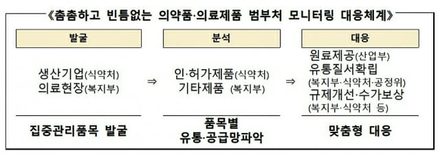 정부와 보건의약 12개 단체가 중동전쟁으로 인한 국가전반의 위기상황과 보건의료분야 의료용품 공급 애로 상황에 대처하기 위해 협력을 선언했다. 의료현장에서 의료제품의 수급불안정이 야기되자 이에 협력해 대응하겠다는 것이다. 6일 보건복지부는 보건의약단체 및 유관부처와 함께 중동전쟁으로 인한 의약품, 의료기기 등 의료제품의 수급불안정을 해소하기 위한 중동전쟁 대응 보건의약단체 제2차 회의 및 의료제품 수급안정 협력 선언식을 개최했다. 선언문에는 ▲정부는 의료용품의 수급불안을 최소화하고, 집중 관리 품목의 생산, 유통 과정에 차질이 없도록 원료 공급 지원, 유통과정 애로 해소를 위한 정책적 지원을 신속하게 추진한다. ▲각 단체는 각 단체별로 대응팀을 구성해 현장 수급현황을 모니터링하고 각 품목의 공급망별로 병목지점을 파악해 의료용품의 수급애로가 발생하지 않도록 상호 협력한다. ▲각 단체는 가격 담합, 부당한 가격 조작, 끼워 팔기, 물량 잠김 등 유통질서 교란행위가 발생하지 않도록생산, 유통 시장 상황을 모니터링하고 협력한다. ▲각 단체는 불안 심리로 인한과다구매(사재기), 매점매석 등의 행위를 근절하고진료와 조제 전 과정에 걸쳐 의료제품 및 소모품의불필요한 낭비가 발생하지 않도록 적극 협력한다. 등을 담고 있다. 정은경 보건복지부 장관은 “엄중한 국가적 위기를 극복하기 위해 의료제품의 수급에 문제가 없도록 상황을 면밀히 주시하며 철저하게 관리하고 신속하게 대응할 것”이라며 “보건의약 관계단체 모두 한마음으로 적극적으로 협력해 주시기를 바란다”라고 밝혔다. 이번 회의에서는 정은경 보건복지부 장관 주재로 보건의료 분야 12개 의약단체(대한의사협회, 대한병원협회, 대한치과의사협회, 대한한의사협회, 대한약사회, 대한간호협회, 한국제약바이오협회, 한국의약품유통협회, 한국의료기기협동조합, 한국의료기기산업협회, 한국의약품수출입협회, 한국의료기기유통협회)와 보건복지부, 산업통상부, 식품의약품안전처, 건강보험심사평가원 등 관계부처 등이 모두 참석해 ▲의료제품 수급상황 모니터링 내용 ▲정부 차원의 대응계획 ▲보건의약단체 협조사항 등 대책을 논의했다. 우선 정부는 의료제품 수급 안정을 위해 의료현장의 수요가 높고 환자치료에 필수적인 의료제품 중 집중관리가 필요한 품목을 신속하게 발굴하고 즉각 대응한다는 원칙을 명확히 했다. 현재 생산기업에 대해서는 산업부와 식약처가 원료 공급 및 생산상황을 모니터링하고 있고, 의료제품의 수요처인 의료기관 및 약국 등에 대해서는 복지부가 수급상황을 매일 모니터링하고 있다. 이를 통해 식약처는 수급에 문제있는 품목이 생기지 않도록 수액제 포장재, 주사기 등 6개(수액제 포장재, 수액세트, 점안제 포장재, 주사기, 주사침, 혈액투석제통) 의약품 및 의료기기 제품에 대해 생산 및 공급 상황을 집중 관리하고, 복지부는 의약품이나 의료기기는 아니지만 수급 상황에 대한 현장의 우려가 있는 멸균포장재, 약포장지, 약통, 의료폐기물통 및 봉투 등에 대해 집중관리한다는 방침이다. 또 식약처와 복지부는 지속적인 모니터링을 통해 수급상황을 파악하고 집중 관리 물품을 추가 발굴‧관리할 계획이며, 발굴된 관리 물품에 대해서는 공급의 병목현상이 발생하지 않도록 신속하게 공급망을 파악하고, 원료제공, 유통질서확립, 규제 및 수가개선 등을 맞춤형으로 추진한다. 치료재료의 경우 최근 환율 상승을 반영해 건강보험 수가를 상향 조정해 의약계의 부담을 완화할 계획이다. 집중관리 품목의 선점‧사재기 등이 발생하지 않도록 신고센터(심평원)를 운영하고 각 단체별 자율규제를 추진하는 한편, 위반행위 발생 시 정부가 즉시 개입해 행정지도 등 필요한 조치를 신속히 시행한다. 오늘 회의에 참석한 보건의약단체와 정부는 의료제품의 수급불안정 위기 상황을 극복하기 위한 '보건의약단체 의료제품 수급안정 협력 선언'에 합의했다. 보건복지부는 의료제품 수급대응을 위한 보건의약단체 회의를 매주 정례화해 개최하기로 했다. 한편 보건복지부는 지난 3일 복지행정지원관 주재로 17개 시·도 복지국장 회의(영상회의)를 개최해 중동전쟁으로 인한 고물가 지속 등 비상경제 상황에서 경제적 어려움이 가중되는 저소득층 등 취약계층 보호·지원과 위기가구 사망사건을 계기로 마련 중인 위기가구 지원 방안과 관련해 중앙-지방정부 간 협력 방안을 논의했다.