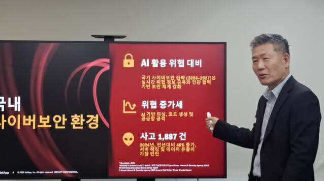 넷앱이 급증하는 사이버 위협에 대응해 데이터를 스스로 지키고 복구하는 차세대 스토리지 전략을 제시했다. 이번에 공개된 서비스는 인공지능(AI)을 활용해 랜섬웨어 침입을 조기에 탐지하고, 암호화되기 전 시점의 데이터를 자동으로 복원해 기업의 업무 연속성을 유지하도록 지원한다. 유재성 한국 넷앱 대표는 22일 서울 강남구 아셈타워에서 열린 딥다이브 미디어 간담회에서 '넷앱 인사이트 2025(NetApp Insight 2025)'의 주요 내용을 발표하며 AI 시대에 맞춘 차세대 보안 스토리지 전략을 선보였다. 넷앱 인사이트는 넷앱이 매년 개최하는 글로벌 기술 컨퍼런스다. 전 세계 IT 전문가와 기업 고객, 파트너들이 모여 데이터 관리·스토리지·AI 인프라 분야의 최신 기술 방향을 공유한다. 올해는 'AI 시대의 데이터 복원력'을 주제로 AI 기반 보안 스토리지 서비스와 차세대 하드웨어 아키텍처 등 다양한 신기술이 공개됐다. 유 대표는 이번 행사의 핵심 서비스로 '랜섬웨어 리질리언스(Ransomware Resilience)'를 소개하며 기존 방화벽이나 백업 체계를 뚫고 들어온 악성코드 공격에도 데이터를 안전하게 보호하고 복구할 수 있는 환경을 제공한다고 설명했다. 랜섬웨어 리질리언스는 AI가 실시간으로 스토리지 내부의 비정상적 행동을 감지하고, 암호화 공격이 일어나기 전 상태로 데이터를 자동 복원하는 서비스다. 공격자가 내부망에 침투해 파일을 대량 암호화하거나 외부로 빼돌리려는 징후를 보이면 AI가 이를 즉시 탐지해 접근을 차단하고 정상 시점의 스냅샷(snapshot)을 자동 생성한다. 이후 서비스형 소프트웨어(SaaS) 환경에서 데이터를 복원해 피해 확산을 막는다. 단순히 공격을 차단하는 수준이 아니라, 침입이 발생하더라도 데이터를 스스로 복원해 업무 중단 시간을 최소화한다는 점에서 기존 백업·복구 체계와 차별화된다. 이번에 추가된 핵심 기능 중 하나는 스토리지 업계 최초로 도입된 '데이터 유출 탐지' 기능이다. AI가 파일 시스템과 사용자 행위를 실시간 분석해, 평소와 다른 데이터 전송 패턴이나 외부 접근 시도를 탐지하면 자동 경보를 발생시킨다. 이를 통해 단순히 암호화 공격만 막는 것이 아니라, 내부자나 외부 해커의 데이터 유출 행위까지 포착해 기업의 정보 유출을 사전에 차단할 수 있다. 또 다른 특징은 '격리된 복구 환경'이다. 감염된 시스템과 분리된 안전한 영역에서 데이터를 복원함으로써, 복구 과정 중에도 악성코드가 다시 침투하는 '2차 감염'을 원천 차단한다. 이를 통해 복구 속도는 빨라지고, 복원된 데이터의 무결성과 신뢰성이 강화됐다. 이어 강연식 기술총괄 전무는 인사이트 2025에서 공개된 주요 기술인 AFX와 AI 데이터 엔진(AI Data Engine)을 소개했다. AFX는 넷앱이 새롭게 선보인 AI 전용 스토리지 시스템으로 성능과 용량을 분리해 독립적으로 확장할 수 있는 구조가 특징이다. AI 분석처럼 빠른 처리 속도가 필요한 경우에는 성능 노드만 확장하고, 장기 저장이나 학습 데이터 보관이 목적이라면 용량만 확장하는 식으로 유연하게 대응할 수 있다. 이러한 구조는 AI 연산을 담당하는 GPU 클러스터와 스토리지 간 데이터 처리 효율을 극대화하고, 불필요한 자원 낭비를 최소화한다. 기업은 AI 워크로드 특성에 따라 필요한 자원만 선택적으로 확장할 수 있어 비용 효율성과 에너지 효율성을 동시에 확보할 수 있다. AFX는 엔비디아(NVIDIA)의 슈퍼팟 인증을 획득했으며, 엔비디아 인퍼런싱 마이크로서비스(NIM)와 연동된다. 덕분에 대규모 AI 학습 및 추론(Inferring) 환경에서도 데이터 입출력 병목 없이 GPU가 최적의 성능을 발휘하도록 지원한다. 강 전무는 "AI 데이터센터는 이제 단순 저장이 아니라, 연산과 데이터 이동이 하나의 흐름으로 통합돼야 한다"며 "AFX는 이를 실현한 차세대 스토리지 플랫폼"이라고 설명했다. AI 데이터 엔진은 AI 모델이 학습하기 전에 데이터를 수집하고, 전처리·분류·정제하는 과정을 자동화하는 플랫폼이다. 기존에 데이터 사이언티스트가 수작업으로 처리해야 했던 데이터 가공 업무를 자동화해, AI 모델 학습 준비 시간을 대폭 단축한다. 또한 기업의 데이터 보안 정책에 따라 민감한 정보를 자동으로 익명화하고, 학습에 필요한 데이터만 GPU로 전송한다. 데이터 품질을 유지하면서도 불필요한 자원 낭비를 줄이고, 보안 규정을 준수한 상태에서 AI 학습 효율을 높일 수 있다. 더불어 유재성 대표는 인사이트 2025 현장에서 진행된 젠슨 황 엔비디아 CEO와 조지 쿠리안 넷앱 CEO의 대담을 언급하며, AI 스토리지 역량 강화를 위한 양사의 글로벌 파트너십을 더욱 강화할 것이라고 강조했다. 이 대담에서 양사는 AI 워크로드의 병목 현상을 해결하기 위해 데이터 저장·이동·분석 과정을 통합하는 새로운 AI 인프라 전략을 제시했으며, 이를 바탕으로 향후 협력 범위를 확장할 계획임을 밝혔다. 유 대표는 "AI가 제대로 작동하려면 단순히 많은 데이터를 모으는 것만으로는 충분하지 않다"며 "AI 학습과 분석이 가능한 형태로 데이터를 가공하고, 동시에 이를 안전하게 보호할 수 있는 인프라가 필요하다"고 말했다. 이어 "데이터는 AI의 핵심 자산이며, 이를 안전하게 지키고 복구할 