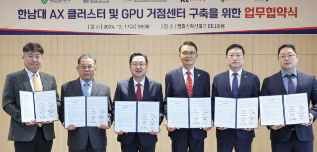 대전시는 17일 한남대학교, 한국정보통신기술협회(TTA), KT, 비케이비에너지, ㈜엠아르오디펜스와 '한남대 AX 클러스터 및 고성능 AI GPU 거점센터' 구축을 위한 업무협약을 체결했다. 협약식에는 이장우 대전시장을 비롯해 이승철 한남대 총장, 손승현 한국정보통신기술협회(TTA) 회장, 성제현 KT 강북․강원법인고객본부장, 정시우 비케이비에너지 회장, 박준상 엠아르오디펜스 대표가 참석했다. 이번 협약은 전 세계적으로 AI 기술 경쟁이 격화됨에 따라 GPU 거점센터 구축을 통해 연구기관과 AI 전문기업을 지원 수요에 대응하기 위한 것으로, 한남대 캠퍼스 부지 7,457㎡ 규모에 2028년까지 건립될 예정이다. 오는 2028년까지 한남대 캠퍼스 부지에 7,457㎡ 규모에 지어질 고성능 AI GPU 거점센터는 방대한 데이터를 처리․학습하기 위한 GPU 서버와 고성능 네트워크, 스토리지 등 AI 서비스 제공에 필수적인 인프라가 갖춰진다. 또한 에너지 효율을 극대화한 고효율 설비를 적용해 전력수요를 최소화하고, GPU 운영․성능 검증․연산 지원 등 전담하는 'GPU 컨트롤타워' 기능을 수행함으로써, 대전 지역 대학․출연연․스타트업이 공동 활용할 수 있는 지역 AI 핵심 거점으로 자리매김할 전망이다. 한편, 이번 사업에서 한남대는 캠퍼스 내 도시첨단산업단지를 기반으로 연구, 데이터, GPU, 교육, 산업이 연계되는 완결형 AX 생태계를 구축하며, 한국정보통신기술협회는 AI 기술 검증․표준화․기술개발 지원을 담당한다. 또한 KT는 GPU거점센터 설계․구축․운영을 총괄하고, 비케이비에너지는 GPU 공급과 투자유치 등 재원조달을 책임지며, 엠아르오디펜스는 네트워크 보안 등 기반 환경 구축을 담당해 안정적 운영을 지원한다. 대전시는 고성능 AI GPU 거점센터가 본격 운영되면 ▲AI 스타트업 성장 촉진, ▲지역 산업의 AI 전환 가속화 ▲디지털 경쟁력 강화 등 다양한 경제․산업적 파급 효과가 나타날 것으로 기대하고 있다. 성제현 KT 본부장은 “KT가 축적한 경험을 토대로 대전 GPU 거점센터가 관․산․학․연을 잇는 대한민국 AI 대표 허브로 도약 되도록 하겠다”라고 밝혔다. 정시우 비케이비에너지 회장은 “대전을 중심으로 AX 하이퍼스케일 GPU 데이터센터를 중부권 최고 수준의 시설로 구축해 AI 데이터센터의 메카로 만들겠다”고 말했다. 이장우 대전시장은 “대전은 대한민국을 대표하는 R&D의 중심도시이자 AI 기술 수요가 가장 집중된 도시”라며 “이번 고성능 AI GPU 거점센터 구축을 통해 대전의 AI 생태계를 한층 고도화하고, 산학연 협력 기반의 글로벌 AX 혁신도시로 도약시키겠다”라고 강조했다.