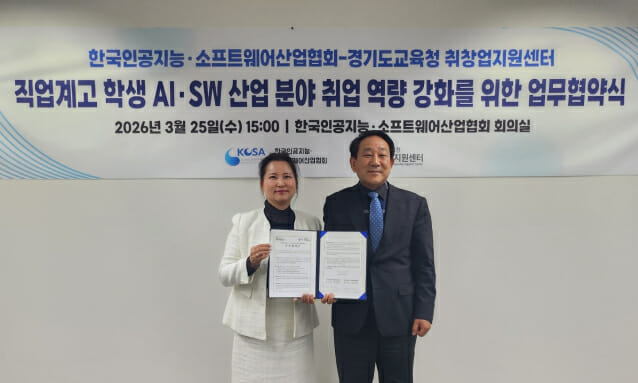 한국인공지능·소프트웨어산업협회(KOSA)와 경기도교육청이 직업계고 학생 인공지능(AI)·소프트웨어(SW) 취업 역량 강화를 위해 손잡았다. KOSA는 경기도교육청 취창업지원센터와 '직업계고 학생 AI, SW 산업 분야 취업 역량 강화를 위한 업무협약(MOU)'을 체결했다고 26일 밝혔다. 협약식은 서울 송파구 KOSA 본원에서 열렸으며 서성일 상근부회장과 김혜리 취창업지원센터장 등 양 기관 주요 관계자가 참석했다. 이번 협약은 빠르게 성장하는 AI, SW 산업 환경에 대응해 직업계고 학생들에게 실무 중심 교육을 제공하고, 이를 취업까지 연결하는 체계를 구축하는 데 초점을 맞췄다. 단순 교육 지원을 넘어 현장 경험과 채용까지 이어지는 구조를 마련한다는 점에서 의미가 있다. 양 기관은 협약을 통해 직업계고 학생 대상 현장실습 교육과정을 공동으로 설계하고 운영할 계획이다. 또한 협회가 보유한 산업체 네트워크를 활용해 학생들에게 현장실습 기회를 제공하고, 취업까지 연계하는 지원 체계를 마련한다. 이와 함께 학생들의 취업 경쟁력 강화를 위한 협력 모델도 지속적으로 고도화할 방침이다. 특히 올해 상반기에는 경기도 내 특성화고 학생을 대상으로 KOSA AI, SW 교육센터에서 실무 중심 교육과정을 운영한다. 피지컬 AI, 소프트웨어 테스트 등 산업 현장에서 요구되는 기술을 반영해 교육 콘텐츠를 구성하고, 현장 적응력을 높이는 데 집중한다. 이와 함께 참여 학생들에게는 산업체 현장실습뿐 아니라 빅테크 기업 오피스 투어 기회도 제공된다. 교육과정을 이수한 학생을 대상으로는 취업처 발굴과 채용 연계 지원도 적극 추진할 계획이다. 서성일 KOSA 상근부회장은 "이번 협약을 통해 학생들이 산업 현장과 가까운 환경에서 실질적인 경험을 쌓고, 협회 네트워크를 기반으로 양질의 일자리로 이어질 수 있도록 지원하겠다"고 밝혔다. 김혜리 경기도교육청 취창업지원센터장은 "AI, SW 산업 변화 속도가 빠른 만큼 학생들이 현장에서 바로 활용할 수 있는 역량을 갖추는 것이 중요하다"며 "KOSA와 협력을 통해 실효성 있는 교육과 취업 연계를 추진하겠다"고 말했다.
