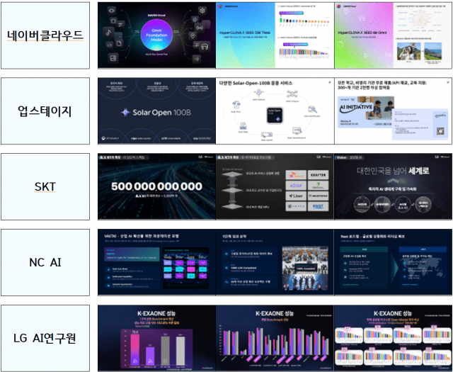 과학기술정보통신부(이하 과기정통부)와 정보통신산업진흥원(NIPA)이 30일 코엑스에서 5개 정예팀의 독자 인공지능(AI) 파운데이션 모델 개발 성과를 공개한다. 과기정통부는 서울 코엑스 오디토리움에서 '독자 AI 파운데이션 모델' 프로젝트 1차 발표회를 개최한다고 22일 밝혔다. 이번 행사는 지난 8월 선정된 5개 정예팀이 그간 개발한 1차 성과물을 선보이는 자리다. 발표회에서는 각 팀의 AI 모델 시연을 포함한 성과 발표(PT)가 진행될 예정이다. 참여 정예팀은 네이버클라우드, 업스테이지, 에스케이텔레콤(SKT), 엔씨에이아이(NC AI), LG AI연구원이다. 과기정통부는 최신 6개월 내 글로벌 AI 모델과 비교해 95% 이상 성능 발휘를 지향한다고 설명했다. 비교 기준이 바뀌는 '무빙타겟' 환경을 전제로 성능 목표를 설정했다는 점도 함께 언급했다. 행사장 로비에는 정예팀들의 AI 체험 부스가 운영된다. 관심 있는 누구나 현장에서 모델을 체험할 수 있도록 구성한다는 계획이다. 행사는 사전등록제로 운영된다. 신청은 행사 포스터의 QR코드를 통해 가능하다. 과기정통부는 이번 발표회를 통해 정예팀의 1차 개발 성과를 국민에게 공유하고, 향후 방향에 대한 의견을 수렴하는 계기로 삼겠다고 밝혔다. 프로젝트 1차 단계평가는 내년 1월 15일 이내 추진하며, 정예팀의 성과와 계획 등을 종합 점검, 평가할 예정이다.