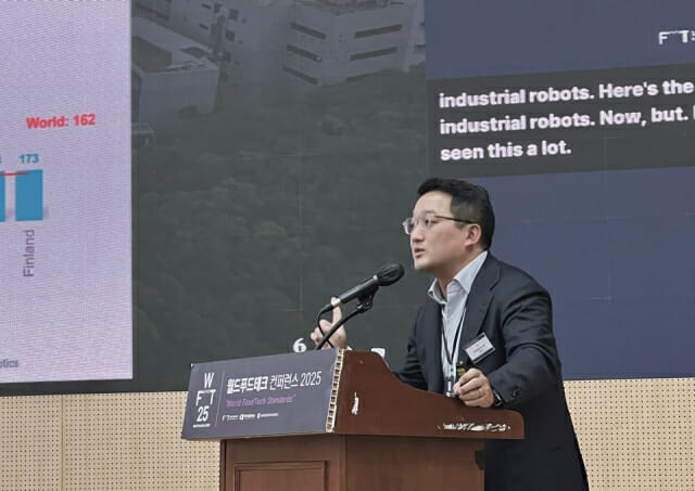 "지금까지 푸드 로보틱스는 자동화에 머물렀지만, 앞으로는 학습과 적응이 가능한 지능형 로봇으로 나아가야 합니다." 이동원 홍콩과기대학(HKUST) 교수가 13일 서울 한국과학기술회관에서 열린 '월드푸드테크 2025 컨퍼런스'에서 푸드 로보틱스 산업의 자동화 현황과 과제, 피지컬 인공지능(AI)의 필요성을 짚었다. 이 교수는 푸드테크 인더스트리 투자가인 데이비드 프라이버그의 발언을 인용하며 "올해는 로봇과 자율 시스템이 농업과 식품 산업을 변혁시키는 원년이 될 것"이라고 전했다. 그는 "식품 산업 전 과정이 자동화·지능화로 재편될 것이며, 그 핵심은 데이터"라며 "데이터를 쌓으려면 로봇이 현장에 투입돼야 한다. 로봇이 움직이며 데이터를 축적하고, 그 데이터가 다시 AI를 진화시키는 구조"라고 설명했다. 이 교수는 식품 가치사슬 전 단계에서 자동화 기술이 빠르게 확산 중이라고 분석했다. 그는 "생산 단계에서는 무인 방제 드론·수확 로봇·자율주행 트랙터가, 유통 단계에서는 스마트 물류 로봇이 도입되고 있다"며 "조리·가공 단계에서는 튀김·조립 등 단순 작업 자동화가 진행됐지만, 라면 끓이기처럼 섬세한 조리는 여전히 어렵다"고 말했다. 또 "서빙·배달 단계에서는 베어로보틱스 같은 자율주행 서빙 로봇이, 소비 이후 단계에서는 음식물 쓰레기 분류나 설거지 자동화 기술이 등장하고 있다"며 "푸드 밸류체인 전체에 걸쳐 로봇이 확산되고 있다"고 짚었다. 그는 "식품 산업은 다른 제조업에 비해 로봇 밀도 가 현저히 낮다"며 그 이유로 낮은 수익 구조(ROI) 와 위생 규제, 비정형 작업 환경을 꼽았다. "식품 산업은 임금 수준이 낮고, 장비 투자비용이 높다. 로봇을 도입해도 투자 회수가 어렵다"고 꼬집었다. 이 교수는 "식품은 균질하지 않다. 같은 재료라도 누가 만들었는지에 따라 맛이 달라지는 등 품질 편차가 크다"며 "로봇이 이런 비정형 환경에서 일관된 품질을 내기 어렵다"고 말했다. 여기에 "식품 위생 규제, 교차 오염 방지 기준, 재질 인증 등도 도입 장벽으로 작용한다"며 "이 때문에 국내 식품 산업의 자동화 수준은 자동차나 반도체에 비해 매우 낮은 편"이라고 덧붙였다. 이 교수는 "지금까지의 로봇은 룰 기반 자동화에 머물렀다"며 "정해진 공간 안에서 프로그래밍된 동작만 수행하기 때문에 식재료 상태 변화나 환경 변수에 대응하지 못한다"고 지적했다. 그는 "피지컬 AI는 이런 한계를 넘기 위한 접근"이라며 "비정형 환경에서도 스스로 판단하고, 시각·촉각·후각 데이터를 학습해 대응할 수 있어야 한다"고 말했다. 일례로 "계란을 한 번 깨본 로봇은 그 경험을 바탕으로 메추리알이나 타조알도 적절히 깨뜨릴 수 있어야 한다"며 "이런 범용적 지능이 바로 피지컬 AI가 지향하는 목표"라고 설명했다. 이 교수는 "라면 끓이기는 피지컬 AI의 대표적 벤치마크 과제가 될 것"이라고 평가했다. 그는 "머신러닝 초기엔 '개와 고양이 구분하기'가 상징적 과제였듯, 로보틱스 분야에서는 '라면을 끓일 수 있는가'가 지능형 로봇의 시험대가 될 것"이라고 했다. 이어 "라면 끓이기를 완전히 자동화할 수 있다면, 그건 인간 수준의 감각과 적응 능력을 로봇이 갖췄다는 의미가 된다"며 "피지컬 AI는 바로 그런 학습 기반의 지능화를 목표로 한다"고 강조했다. 이 교수는 “피지컬 AI의 발전을 위해선 시각-언어-행동(VLA)을 통합하는 모델이 필요하다"고 말했다. "하나의 파운데이션 모델로 엮어야 로봇이 현실 상황을 보고 이해하고, 그에 맞는 행동을 선택할 수 있다"고 설명했다. 그는 "한 번도 본 적 없는 새로운 식재료나 메뉴에도 별도 프로그래밍 없이 적응해야 한다"며 "계절 변화나 재료의 차이를 인식해 실시간으로 대응하는 능력이 피지컬 AI의 핵심"이라고 덧붙였다. 이 교수는 발표를 마무리하며 "현실은 이상에 비해 갈 길이 멀다"고 했다. 그는 "현재 최고 수준 로봇 기술도 아직 물병을 인식하고 뚜껑을 여는 수준에 머물러 있다"며 "사람에게는 쉬운 일이지만 로봇에게는 여전히 가장 어려운 영역"이라고 전했다. 그러면서 "하지만 이런 과제들을 하나씩 해결하면서 피지컬 AI는 점차 현실로 다가오게 될 것"이라고 강조했다.