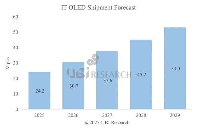 "IT OLED, 2029년까지 출하량 2배 이상 성장"…韓·中 경쟁 치열