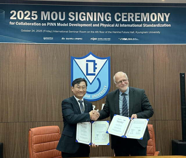 정보통신산업진흥원(NIPA)이 글로벌 피지컬 인공지능(AI) 생태계 조성을 목표로 독일 민관 협력 플랫폼(LNI 4.0)과의 협력에 나섰다. NIPA는 지난 24일 경남 창원시 마산합포구 경남대학교에서 LNI 4.0과 한·독 AI 및 데이터 표준화 협력을 위한 업무협약(MOU)을 체결했다고 27일 밝혔다. 협약은 글로벌 수준의 피지컬 AI 생태계 조성을 위한 혁신 네트워크를 구축하고 한국형 피지컬 AI 기술 개발을 위한 기반 마련과 AI·데이터 표준 협력을 위해 추진됐다. 협약을 통해 양 기관은 ▲데이터 국제 표준 제정 협력 ▲데이터의 안전한 공유·활용을 위한 기술·경험 공유 ▲AI·디지털전환(DX)·산업 4.0 분야에서의 AI 전환(AX) 산업 경쟁력 강화를 위한 산학연관 교류 협력을 추진한다. 이번 협약을 계기로 LNI 4.0뿐만 아니라 국가기술표준원(KATS), 독일 연방정부 산하 협의체(IDTA), 독일 표준화 기관(SCI 4.0) 등 표준화 관계 기관과 국제 표준 개발을 비롯한 산업 자산의 가상 모형 표준 모델(AAS) 및 데이터 보안 전송을 위한 오픈소스 기반 체계(EDC) 표준 시장 적용 협력이 추진된다. 특히 피지컬 AI 기술 상호운용성 및 경쟁력 확보를 위한 업무 협력을 이어갈 예정이다. NIPA 김득중 부원장은 "이번 협약을 통해 한국과 독일 간 상호 기술 협력과 인력 교류를 강화함으로써 AX를 통한 산업 혁신과 국내 피지컬 AI 생태계의 글로벌 협력을 위한 초석이 마련될 수 있을 것으로 기대한다"며 "한국과 독일의 산학연관 협력을 위한 지원을 아끼지 않겠다"고 밝혔다.