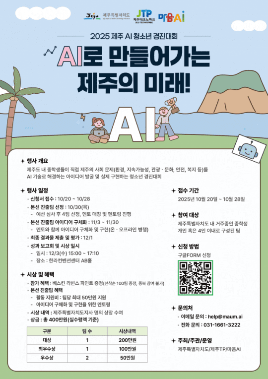 마음AI는 오는 12월 3일 제주 한라컨벤션센터에서 열리는 '2025 제주 AI·사이버보안 컨퍼런스' 행사에 운영사로 참여한다고 27일 밝혔다. 이번 컨퍼런스는 제주시의 'AI·디지털 대전환 로드맵' 발표 1주년을 기념, AI와 사이버보안 융합을 통해 제주가 지능형 디지털 사회로 나아가는 방향을 모색한다. AI·사이버안보 컨퍼런스, 기술과 신뢰의 균형 논의 행사에는 도의회, 공공기관, 민간기업 관계자 등 100여명이 참석할 예정이다. 'AI 대중화에 따른 사이버안보 동향', 'AI 트렌드 등 글로벌 사례 공유' 등이 다뤄진다. 특히 AI와 사이버보안 특별강연이 진행되며, 산업·교육·공공 분야의 디지털 전환 전략도 폭넓게 논의된다. 피지컬AI 체험존, 현실 공간에서 작동하는 AI 기술 시연 운영기관인 마음AI는 이번 컨퍼런스에서 행사 진행 및 '피지컬(Physical AI) 체험존'을 운영한다. AI가 실제 물리 환경 속에서 작동하는 차세대 기술을 공개한다. 체험존에서는 마음AI의 대화형 AI 에이전트(SUDA 기반), 자율주행 로봇(WoRV 기반), AI 음성제어 및 안내 로봇, AI 방송·촬영 로봇 등 산업형 피지컬 AI 기술이 시연된다. 이에, 참가자들은 AI의 실시간 인식·판단·이동·상호작용을 직접 경험할 수 있다. 마음AI는 사람의 언어·시각·행동을 통합적으로 인식하고 스스로 판단·움직이는 '피지컬 AI(Physical AI)'를 중심으로, SUDA(온디바이스 음성대화 AI), MAAL(온프레미스 Agent LLM), WoRV(E2E 비전-언어-액션 자율주행 모델) 등 독자 기술을 통해 산업·교육·공공서비스 전반에 걸친 AI 실증 생태계 조성에 앞장서고 있다. '2025 제주 AI 청소년 경진대회', 미래세대의 기술 경험 확산 이번 컨퍼런스에서는 제주 지역 중학생들이 직접 AI를 활용해 지역 문제를 해결하는 '2025 제주 AI 청소년 경진대회'도 함께 열린다. 참가 학생들은 생성형 AI 및 Agent·Advance·Physical AI 등 첨단 AI 기술을 활용해 지역 사회 문제해결에 실질적 기여가 가능한 서비스 기획 및 데모 프로그램(시제품) 구현, 미래세대가 기술로 사회적 가치를 창출하는 경험의 장이 될 예정이다. 참가 신청은 오는 28일까지 구글폼을 통해 접수 받는다. 본선 진출팀에게는 팀당 최대 50만원의 활동 지원비를 지급한다. 4개 팀에 도지사상과 총 400만원의 상금을 수여한다. 제주형 AI 생태계의 실질적 촉매 역할 마음AI는 이번 행사를 “AI가 산업과 사람을 연결하는 디지털 전환의 전환점”으로 기획했다. AI를 통해 산업 생산성과 효율을 높이는 동시에, 공공과 민간이 함께 참여하는 제주형 AI 생태계의 선순환 모델을 구축, 스마트 관광·첨단 농업·지능형 방재 등 지역 특화산업으로 확산할 계획이다. 손병희 마음AI 연구소장은 “이번 컨퍼런스는 기술 교류를 넘어, 제주가 AI와 보안이 공존하는 디지털 중심지로 도약하는 모색의 장이 될 것”이라며 “피지컬 AI 대표기업으로서 산업, 교육, 공공서비스 전 영역에 걸쳐 AI의 실질적 가치와 사회적 효용을 확산시키는 역할을 이어가겠다”고 말했다.