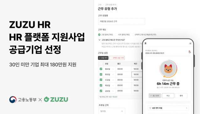 코드박스 주주(ZUZU) HR이 고용노동부가 주관하는 '영세사업장 HR 플랫폼 이용 지원 사업'에 최종 선정됐다고 28일 밝혔다. 이번 사업은 근로자 30인 미만의 영세사업장이 HR 플랫폼을 자체 부담 없이 이용할 수 있도록 지원하는 정부 정책이다. 코드박스의 인사·보상 통합 관리 플랫폼 ZUZU HR이 지원 대상으로 선정됨에 따라 2월1일부터 영세사업장 대상으로 ZUZU HR을 기업당 최대 180만원씩 지원하게 된다. 영세사업장의 근태관리는 대부분 엑셀이나 수기로 이뤄져 왔다. 담당자는 직원 출퇴근을 일일이 확인해야 하고, 휴가 신청이 들어올 때마다 수동으로 정보를 입력하는 반복 업무로 회사 성장에 집중할 에너지를 빼앗긴다. 자칫 관리 업무를 소홀히 하면 오류가 발생하기 쉽고, 근태 현황을 실시간으로 파악하기도 어렵다. ZUZU HR은 이러한 문제를 해결한다. 임직원들이 간편하게 출퇴근을 등록할 수 있고, 관리자는 구성원별 근무 유형을 설정해 근무 이력을 실시간 조회할 수 있다. PC와 모바일 모두에서 이용 가능한 휴가 신청 및 승인 프로세스는 모든 과정과 히스토리를 완벽하게 기록한다. 이외에도 ZUZU HR은 조직 관리, 휴가 관리, 전자계약 등 기업의 인사 운영에 필요한 다양한 기능을 제공한다. AI 기반의 조직도 자동 세팅과 엑셀 데이터 간편 붙여넣기로 도입 과정의 복잡함을 줄였으며, 반복적인 인사 행정 업무를 자동화해 담당자가 더 중요한 업무에 집중할 수 있도록 설계했다. ZUZU HR 고객사이자 집업페이 운영사 데브디의 김기태 대표는 "초기 스타트업이라 인사·노무 관련 모르는 게 많았는데, ZUZU 팀이 1:1로 세심하게 지원해줘서 정말 든든했다. 단순 근태 관리를 넘어 주주총회, 법인 등기까지 한곳에서 해결되는 것이 가장 큰 장점"이라고 말했다. 이어 "특히 투자 유치를 준비하면서 주주총회와 등기 처리가 많았는데, 이를 한 곳에서 할 수 있어 리소스 절약에 큰 도움이 됐다. 초기 법인의 대표님들께 적극 추천한다"고 덧붙였다. 서광열 코드박스 대표는 "ZUZU HR이 지난해 11월 출시한 신제품인데도 이번 사업에 선정된 것은 기술력과 사용성에 대한 객관적 검증"이라며 "영세사업장의 투명한 인사 운영과 효율적인 근태관리는 기업의 신뢰성과 성장성을 함께 높이는 핵심이다. ZUZU HR은 이를 모두 손쉽게 관리할 수 있는 툴로써, 영세사업장이 체계적으로 성장하도록 도울 것"이라고 말했다.