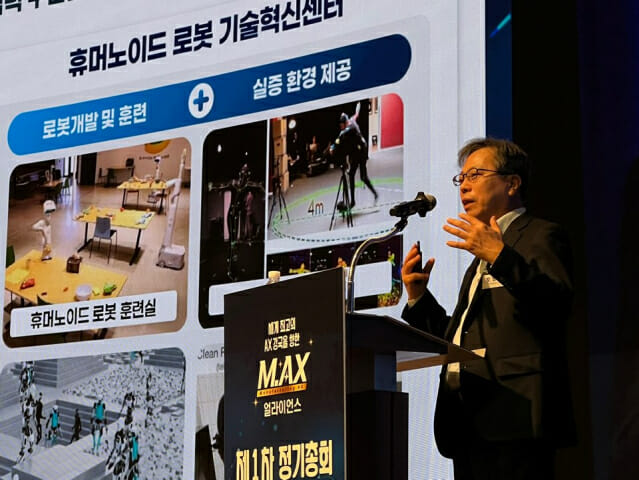 "맥스(M.AX) 얼라이언스 인공지능(AI) 로봇 분과는 휴머노이드를 강조한 신산업으로 출발했습니다. 단순한 기술 개발이 아니라 생태계 협력을 바탕으로 실제 현장에 들어가는 구조로 설계했습니다." 장병탁 M.AX 얼라이언스 AI·로봇 분과위원장은 24일 서울 대한상공회의소에서 열린 M.AX 얼라이언스 제1차 정기총회에서 휴머노이드를 축으로 한 국내 AI 로봇 산업이 연구개발을 넘어 실증과 산업 적용 단계로 진입했다고 밝혔다. 장 위원장은 "올해 이미 14개 연구개발 과제를 착수했고 약 5천300억원 규모 연구비가 투입되고 있다"며 "로봇 AI 파운데이션 모델 개발과 이를 뒷받침하는 시뮬레이터, 핵심 부품 연구가 동시에 시작됐다"고 설명했다. 특히 그는 현장 실증을 강조했다. 장 위원장은 "기술 개발에 그치지 않고, 제조 협력사 10곳 이상 현장에서 바로 프로젝트가 시작됐다"며 "물류 창고 등에서 양팔 휴머노이드 로봇을 실제 작업에 투입하는 실증이 진행 중"이라고 말했다. 그는 "과제 설계 단계부터 수요 기업을 묶어 현장 도입을 전제로 한 것이 특징"이라고 덧붙였다. 생태계 측면에서도 변화가 나타나고 있다고 평가했다. 장 위원장은 "AI 전문 기업, 로봇 하드웨어 기업, 부품 기업, 수요 기업이 함께 협력하는 구조가 만들어지고 있다"며 "이 과정에서 20건 이상 협력 MOU가 체결됐다"고 밝혔다. 그는 "미국이나 중국에 비해 부족했던 국내 휴머노이드 하드웨어 생태계가 빠르게 형성되고 있다"고 말했다. 핵심 인프라로는 서울대 '휴머노이드 로봇 기술혁신센터'를 꼽았다. 장 위원장은 "서울대에 휴머노이드 로봇을 설치해 훈련과 동작 분석, 시뮬레이션, 데이터 수집, 현장 유사 실증을 수행하는 기술혁신센터 과제가 이미 시작됐다"며 "내년 상반기 중 개소식을 계획하고 있다"고 밝혔다. 그는 "이 센터를 통해 얼라이언스 참여 기업들이 함께 실증하고 협력할 수 있는 기반을 만들 것"이라고 했다. 내년 핵심 과제로는 'AI 로봇 데이터 팩토리'와 '휴머노이드 로봇 파운드리' 구상을 제시했다. 장 위원장은 "중국 등에 비해 상대적으로 취약한 로봇 학습 데이터를 대규모로 축적하기 위한 데이터 팩토리 사업을 기획하고 있다"며 "장기적으로는 반도체 파운드리처럼, 원하는 사양의 휴머노이드 로봇을 만들어주는 파운드리 개념까지 검토하고 있다"고 말했다. 글로벌 무대 공략도 병행한다. 그는 "CES에서 M.AX 얼라이언스관을 구성해 10개 기업이 공동 전시를 진행할 예정"이라며 "내년 7월 인천에서 열리는 로보컵 국제대회를 통해 휴머노이드 로봇 기술을 글로벌 무대에서 검증하고 홍보할 계획"이라고 밝혔다. 장 위원장은 "휴머노이드는 아직 도입 초기 단계인 만큼 안전과 보안, 규제 이슈도 중요하다"며 "규제 샌드박스 등을 통해 산업 적용에 필요한 제도적 준비도 함께 해나갈 것"이라고 말했다. 그는 "AI 로봇과 휴머노이드는 단일 기업이 만들 수 있는 산업이 아니다"라며 “M.AX 얼라이언스를 중심으로 생태계가 함께 성장하는 구조를 반드시 만들어가겠다"고 강조했다.