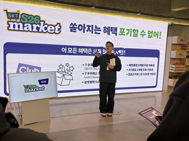 “SK텔레콤 갤럭시 S26 사전 예약 혜택 퀴즈 맞추시면 경품 드립니다” SK텔레콤은 갤럭시 S26 시리즈(이하 S26) 사전 예약이 시작되는 이달 27일부터 다음달 29일까지 'SKT S26 마켓' 팝업스토어를 연다. 운영 시간은 오전 11시부터 오후 8시까지다. 27일 찾은 서울 성동구 SK텔레콤 플래그십 스토어 T팩토리 성수에선 방문객을 위한 퀴즈 이벤트가 진행됐다. 매일 오후 3시에 열리는 마켓 이벤트에선 S26 기능이나 사전 예약 프로모션 관련 퀴즈를 맞추면 방문객에게 경품을 증정한다. S26의 '26'이란 숫자에 착안해 매일 26번 째 관람객에겐 케이스티파이 상품권을, 26번 째 관람객에겐 성수동 맛집 이용권을, 126번 째 관람객에겐 커피 상품권 등을 제공한다. 팝업 콘셉트는 '제철을 맞은 S26'이다. 1층 신선체험존, 갓생청과, 펀피쉬마켓, 푸릇트럭 등 4개 구역에선 갤럭시S26, 갤럭시S26+, 갤럭시S26울트라 등 S26 모든 단말기와 색상이 놓였다. 방문객은 구역마다 마련된 이벤트를 통해 S26의 업그레이드된 AI 기능을 체험할 수 있다. 4개 구역을 돌며 힌트를 찾아 크로스워드 퍼즐을 풀면 마지막 '땡큐존'에선 선물을 증정한다. 2층에도 S26 단말기 10대 정도가 비치됐다. T팩토리 방문객에게만 제공하는 사전 예약 혜택이 있다. 팝업을 방문해 T 다이렉트샵 사전 예약을 진행하는 방문객을 대상으로 매일 선착순 50명에게 갤럭시 S26 시리즈 사전예약 시 사용 가능한 10만원 할인 쿠폰과 에코백 등을 제공한다. S26 사전 예약 기간은 오는 3월5일까지이며, 6일에 개통이 시작된다. S26 시리즈 공식 출시일은 3월11일이다. 갤럭시S26, 갤럭시S26+, 갤럭시S26울트라는 '블랙', '화이트', '스카이 블루', '코발트 바이올렛' 4가지 색상으로 구성됐다. 용량은 256GB, 512GB 두 가지로 출시되며 갤럭시S26울트라는 1TB 모델도 출시된다. 갤럭시S26 256GB 용량 기준 가격은 부가세 포함 125만 4000원, 512GB 150만 7000원, 갤럭시S26+는 256GB 145만 2000원, 512GB 170만 5000원이다. 갤럭시S26울트라는 256GB 179만 7400원, 512GB 205만 400원, 1TB 254만 5400원이다.