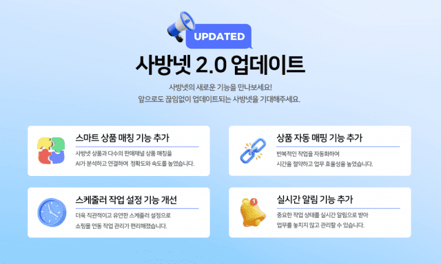 다우기술(대표 김윤덕)이 운영하는 쇼핑몰 통합관리 서비스 '사방넷'이 셀러의 반복 업무를 자동으로 처리하는 기능을 연이어 고도화 했다고 21일 밝혔다. 이번 기능 고도화의 핵심은 셀러가 직접 처리하던 주문·클레임 수집, 상품 및 재고 상태 송신, 상품 매핑, 작업 결과 확인 등 주요 업무를 시스템이 대신 수행하는 범위를 넓힌 데 있다. 단순한 통합 관리 기능을 넘어, 셀러 실무 전반의 자동화 흐름을 촘촘하게 연결했다는 점에서 의미가 크다. 우선 자동 실행과 결과 확인 단계의 편의성이 크게 높아졌다. 스케줄러 기능은 주문 및 클레임 수집, 상품·재고 상태 송신 업무를 요일과 시간대, 기준일에 맞춰 세밀하게 설정할 수 있도록 개선됐다. 여기에 작업 완료와 실패 여부를 팝업, 알림톡, 문자로 받아볼 수 있는 작업내역 알림 기능이 더해지며, 주요 업무의 실행부터 결과 확인까지 자동 흐름 안에서 관리할 수 있게 됐다. 주문 처리 과정에서 반복적으로 발생하던 상품 매핑 업무 역시 자동화 범위에 포함됐다. 기존에는 주문서 상품과 사방넷 등록 상품을 셀러가 직접 비교해 맞춰야 했지만, 이제는 과거 매핑 이력을 기반으로 자동 연결이 가능해졌다. 반복 수기 업무가 줄어들면서 주문 확정까지 걸리는 시간이 단축되고, 주문량이 많은 셀러일수록 체감 효율이 더욱 높아질 것으로 기대된다. AI 기반 '스마트 상품 매칭' 기능도 추가된다. 기존 쇼핑몰에 등록된 상품 정보를 사방넷으로 불러온 뒤 다른 쇼핑몰 상품과 자동 연결해주는 기능으로, 신규 셀러가 초기 상품을 이관하거나 다채널 확장을 진행할 때 발생하던 반복 등록 부담을 줄일 수 있다. 사방넷은 이를 통해 셀러의 초기 세팅부터 운영 단계까지 자동화 범위를 AI 기반으로 확장하게 됐다. 이번 업데이트를 통해 사방넷은 개별 기능 개선을 넘어, 셀러가 반복적으로 수행하던 주요 업무를 시스템이 자동으로 처리하는 범위를 한층 넓혔다. 특히 상품 매핑처럼 기존에 셀러가 상품 정보를 일일이 비교하며 처리해야 했던 업무까지 자동화되면서 실질적인 업무 소요 시간이 크게 줄어들 것으로 기대된다. 여기에 AI 기반 상품 연동 기능까지 더해지며 신규 셀러의 초기 세팅부터 다채널 운영 확장까지 보다 편리하고 효율적인 업무 환경을 제공하게 됐다. 사방넷은 지난해부터 AI 기반 기능을 지속적으로 선보여 왔으며, 올해 안에도 기능 확장을 위한 추가 업데이트를 이어가며 셀러 운영 효율 고도화를 지원할 계획이다. 다우기술 커머스부문 김정우 부문장은 “이번 업데이트는 셀러의 반복 업무를 부분적으로 줄이는 수준을 넘어, 운영 전반의 자동화 흐름을 연결하는 데 초점을 맞췄다”며 “앞으로도 AI와 자동화 기술을 바탕으로 셀러가 더 적은 리소스로 더 높은 운영 효율을 낼 수 있도록 기능 고도화를 이어갈 것”이라고 밝혔다.