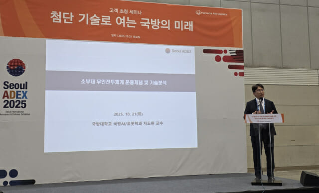 "소부대 단위 군집전투로봇은 앞으로 병력의 공백을 메우는 핵심전력이 될 것입니다." 차도완 국방대학교 국방AI로봇학과 교수는 21일 서울공항에서 열린 '서울 국제항공우주 및 방위산업 전시회(ADEX 2025)'에서 '소부대 군집전투로봇 기술분석 및 운용개념'을 주제로 발표했다. 차 교수는 러시아-우크라이나 전쟁의 장기화가 지상 무인전투체계(UGV)의 실전화를 가속했다고 분석했다. 그는 "우크라이나 전방 여단의 병력은 50~60% 수준으로, 전선 유지에 30만명 이상의 병력 보강이 필요하다"며 "이 공백을 메우기 위해 우크라이나는 1만5천대 이상의 UGV를 실전 배치할 계획이며, 이는 단순한 장비 보강이 아닌 국가 전략적 필수조건이 되고 있다"고 설명했다. 미국 역시 국방고등연구계획국(DARPA)의 '스쿼드-X' 프로그램을 통해 분대 단위로 UGV를 통합하고 있으며, 유럽 밀렘로보틱스의 '테미스(THeMIS)'는 이미 10개국 이상에서 실전 운용 중이다. 그는 "세계 지상 무인전투체계 시장은 2034년까지 약 55억 달러 규모로 성장할 전망"이라며 전쟁 양상이 기술 중심으로 급변하고 있다고 강조했다. 미국은 다영역 작전(MDO)과 유무인 협업(MUM-T) 개념을 중심으로 로봇·자율시스템(RAS) 기술을 발전시키고 있다. 차 교수는 "미국은 미 육군 미래사령부(AFC)를 중심으로 민간 기술을 적극 도입하고, 실전 모의 실험을 병행하는 개방형 사업화 구조를 갖췄다"며 "올해 약 4억8천만 달러(약 6천870억원)가 관련 예산으로 편성됐다"고 밝혔다. 우크라이나는 '드론군' 국가 프로그램을 통해 10만 대 드론과 수천 대 지상로봇의 양산체계를 추진 중이다. 민·군 협력 방산혁신 플랫폼 '브레이브1'을 통해 스타트업 기술을 6개월 내 실전에 투입하는 신속 상용화 체계를 운영하고 있다. 차 교수는 '선 로봇, 후 병력' 작전 패러다임을 소개했다. 그는 "로봇이 위험지역에 우선 진입하고 병력이 후속 진입하는 구조로 전환돼야 한다"며 "소부대 단위의 유무인 복합작전이 세계적 흐름으로 자리잡고 있다"고 말했다. 그는 특히 소부대 중심 통합운용 체계(MUM-T)와 군집형 자율운용의 결합을 강조했다. 정찰형·전투형·수송형 UGV를 병렬로 운용해 임무를 분산하고, AI·센서·네트워크 기반의 실시간 정보공유 구조를 통해 전투 생존성과 효율성을 높이는 전략이다. 차 교수는 "1:N 또는 N:N 통제구조로 확장된 군집 운용개념은 병력 손실을 줄이는 동시에 작전지속성을 높일 것"이라고 전망했다. 차 교수는 '달파 오프셋' 프로그램을 인용하며, 미래 군집전투로봇의 핵심 기술로 '사용자-군집 상호작용'과 '군집 의사결정 및 협업기술'을 꼽았다. 그는 "증강현실(AR)·가상현실(VR) 기반 직관적 조작 인터페이스와 분산 강화학습 기반의 협업 AI 기술이 향후 경쟁우위를 좌우할 것"이라고 진단했다. 전문가 설문 결과 '기동' 기능이 최우선 개발 분야로 꼽혔다. 자율주행기술이 핵심이자 차별화 기술로 도출됐다. 차 교수는 "자율주행 수준이 낮을수록 동일 기술 확보 필요성이 커지기 때문에, 자율주행은 모든 군집체계 기반 기술로 봐야 한다"고 강조했다. 차 교수는 "소부대 군집전투로봇은 단순한 장비가 아니라, 미래 전장 패러다임의 전환점이 될 전략자산"이라며 "세계 각국은 이미 민간기술을 적극 수용하며 실전 중심으로 무인전투체계를 고도화하고 있다"고 설명했다. 그러면서 "우리 군도 기술개발뿐 아니라 산·학·군 연계 및 조달체계의 제도적 보완이 시급하다"며 "AUSA 참관을 통해 해외 사례를 접하고 더욱 실질적인 노력을 기울여야 한다"고 촉구했다.