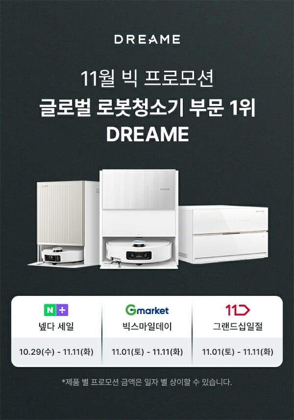 스마트 홈 브랜드 드리미 테크놀로지는 네이버·지마켓·11번가 등 3대 메인 온라인 채널에서 '빅 프로모션'을 진행한다고 3일 밝혔다. 오는 11일까지 진행되는 이번 행사는 네이버 '넾다세일'을 시작으로 지마켓 '빅스마일데이'와 11번가 '그랜드십일절'로 이어지는 온라인 대규모 릴레이 프로모션이다. 드리미의 대표 로봇청소기인 ▲매트릭스 10 울트라 ▲아쿠아 10 울트라 롤러 ▲X50s 프로 울트라를 비롯해 ▲음식물처리기 리보 등 스테디셀러 제품을 포함했다. 5일까지는 지마켓에서 드리미 제품을 최대 51% 할인 판매한다. 11번가 그랜드십일절 행사 기간 중 최대 48% 할인 및 악세사리 키트를 추가 증정한다. 이번 프로모션을 통해 로봇청소기를 구매한 고객은 120만원 상당 경품을 증정하는 드리미 '파업선언' 프로모션 캠페인에도 참여할 수 있다. 매주 5명을 추첨해 TV, 해외여행 항공권, 특급호텔 숙박권, 안마의자 등 휴식 관련 다양한 경품을 고객이 직접 선택해 받을 수 있는 특별한 기회를 제공한다. 드리미 관계자는 "접근성이 높은 3대 메인 온라인 채널에서프로모션을 진행하게 됐다"라며 "고객 체감 만족도를 최우선으로 준비한 만큼 많은 분들이 혜택을 누리길 바란다"고 말했다. 한편 드리미 파업선언 프로모션은 오는 11월 30일까지 참여할 수 있다. 캠페인 관련 자세한 내용은 드리미 공식 웹사이트에서 확인 가능하다.