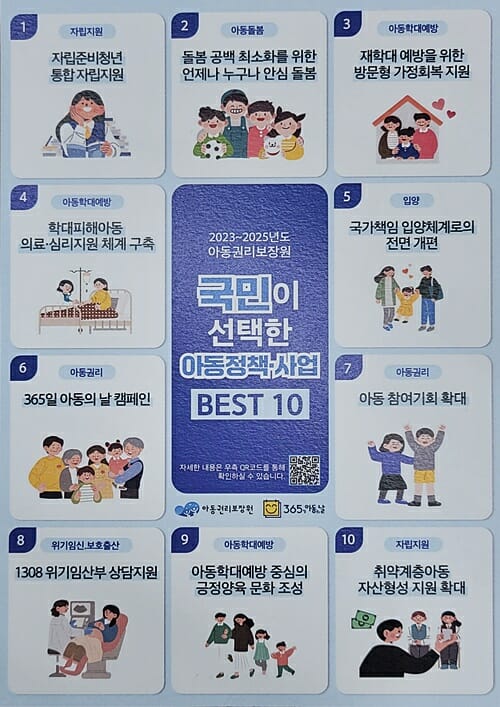 국민이 선택한 아동정책·사업 1위로 '자립준비청년 통합 자립 지원' 사업이 꼽혔다. 아동권리보장원은 3일 오후 2026년 신년 기자간담회에서 국민 4700여명이 직접 선택한 '아동정책·사업 BEST 10'과 2026년 주요 아동정책·사업 추진 방향을 발표했다. 아동권리보장원은 그간의 정책 성과를 국민의 시선에서 점검하고 정책 추진에 반영하기 위해 최근 3년간 추진한 주요 아동정책·사업 13개 분야(아동권리, 입양, 위기임신·보호출산. 아동학대예방, 공공후견, 자립지원, 아동돌봄, 실종아동 예방. 가정위탁. 드림스타트. 아동정책. 종사자 교육, 아동보호체계), 26개 성과를 대상으로 1월22일부터 29일까지 약 8일간 국민 참여 온라인 투표를 진행했다. 이번 투표는 1인이 3표 방식으로 총 4705명(1만 4115표)이 참여했으며, 국민이 중요하게 생각하거나 정책의 성과를 실제 체감할 수 있었다고 평가하는 정책 10개를 'BEST 10'으로 선정했다. 투표 결과, 상위 10개 사업의 득표율은 최고 8.5%에서 최저 4.3%까지 비교적 고르게 분포해 사업 간 표 차가 크지 않은 것으로 나타났는데, 상위권 전반이 6~7%대 지지를 얻었고, 특히 4위부터 7위까지 득표율은 모두 5.8~6.2% 수준으로 근소한 차이를 보였다. 이는 국민들이 개별 정책의 우열보다는 자립지원, 아동돌봄, 아동학대 예방, 권리 보장 등의 분야를 중요하게 생각하고 있다는 설명이다. 1위로 선정된 '자립준비청년 통합 자립지원'은 1198표(8.5%)로 가장 많은 공감을 얻었다. 보호종료 이후 사회에 진입하는 자립준비청년을 대상으로 주거·소득·일자리·심리 영역을 아우르는 통합 지원체계를 구축해, 자립을 위한 기반을 마련했다는 점에서 우수성과로 꼽혔다는 분석이다. 아동학대 대응 정책에 대한 평가도 높았는데, 아동학대 예방 분야에서는 ▲재학대 예방을 위한 방문형 가정회복 지원 ▲학대피해아동 의료·심리지원 체계 구축 ▲아동학대예방 중심의 긍정양육 문화 조성이 선정됐다. 이는 고위험 가정 맞춤형 사례관리부터 학대피해아동 회복 지원, 바람직한 양육 인식 확산까지 아동학대에 전방위적으로 대응한 노력을 인정받은 결과다. 아동돌봄 분야에서는 언제나 누구나 안심 돌봄을 통해 운영시간을 확대하고, 야간 돌봄 수요조사 등을 기반으로 돌봄 공백을 최소화한 정책이 주요 성과로 선정됐다. 또 취약계층아동 자산형성 지원 확대를 통해 디딤씨앗통장 가입 대상을 확대하고, 저축이 어려운 아동(보호대상아동, 기초수급아동 등)의 자산 형성을 지원한 정책도 포함됐다. 국가책임으로 아동을 보호하는 제도 전환 역시 높은 평가를 받았다. 국가책임 입양체계로의 전면 개편을 통해 헤이그국제아동입양협약 이행에 따른 공적 입양체계 전환 기반을 마련하고, 입양정책위원회 운영 등 제도 이행을 지원해 온 점이 성과로 평가됐다. 이외에도 1308 위기임산부 상담 지원을 통해 전국 16개 지역상담기관을 구축, 365일 위기임산부 상담 대응 체계 운영, 아동 참여기회 확대, 365일 아동의 날 캠페인 등도 대표 성과로 꼽혔다. 아동권리보장원은 이번 투표 결과 발표를 계기로 국민 의견을 반영한 정책 보완과 개선을 지속해, 아동정책 중심기관으로서의 책임을 다해 나간다는 계획이다. 정익중 아동권리보장원 원장은 “아이들의 현재가 안전한지, 필요한 보호가 빈틈없이 제공되고 있는지에 대한 지속적인 점검 없이는 아동정책은 선언에 머물 수밖에 없다”며 “아동을 위한 사회가 '저절로'가 아닌, '함께'의 노력으로 만들어질 수 있도록 국민들의 따뜻한 관심과 조언을 부탁한다”고 밝혔다.