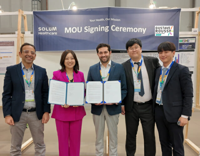 인공지능(AI) 기반 조기 암 진단 전문기업 솔루엠헬스케어가 중동·북아프리카(MENA) 지역을 겨냥한 AI 기반 조기 암 진단 플랫폼 개발과 상용화에 나선다. 솔루엠헬스케어는 구스타브 루시 인터내셔널 이집트 병원과 'AI 기반 조기 암 진단 플랫폼의 개발 및 글로벌 적용'을 위한 기술 협력 업무협약(MOU)을 체결했다고 20일 밝혔다. 이번 협약식은 독일 베를린에서 개최된 세계 최대 규모 종양학 학술대회 'ESMO 2025' 현장에서 진행됐다. 김지희 솔루엠헬스케어 대표, 아흐마드 몰시 구스타브 루시 인터내셔널 이집트 병원 매니징 디렉터(종양내과 전문의), 아흐메드 압델아지즈 아인 샴스 대학병원 종양학 교수 등이 참석했다. 구스타브 루시 인터내셔널 이집트 병원은 프랑스 구스타브 루시 병원의 브랜드 라이선스로 카이로에 설립된 암 전문 센터다. 프랑스 본원은 임상 연구·신약 개발·정밀의료 분야에서 다수의 연구를 수행하며 유럽 주요 암 치료 기관으로 알려져 있다. 양측은 이번 협약을 통해 MENA 지역 암 환자를 대상으로 임상 연구를 공동 추진하고, 연구 성과의 상용화 방안을 함께 모색할 예정이다. 솔루엠헬스케어는 이를 통해 MENA 지역을 포함한 글로벌 진출 기반을 넓힌다는 계획이다. ESMO는 최신 암 치료 기술과 임상 연구 성과를 공유하는 국제 무대로, 세계 의료 전문가 및 제약·바이오 기업들이 참여하는 글로벌 암 연구 허브로 평가받는다. 솔루엠헬스케어는 이번 학회에서 조기 암 환자와 비환자의 생체 대사물질 차이를 규명한 연구 초록이 공식 채택돼 'Biomarkers & Translational Research(Agnostic)' 포스터 세션에서 발표를 진행했다. 소변 기반 대사체 분석을 통해 암 발생에 따른 대사체 변화 양상을 확인해 자사 기술의 임상 적용 가능성을 점검하는 계기가 됐다고 회사 측은 설명했다. 학회 기간에는 해외 의료진·연구진과 추가 협의를 진행하며 글로벌 네트워크도 확대했다. 아흐마드 몰시 매니징 디렉터는 "암을 조기에 발견하는 것은 환자의 치료 경험뿐 아니라 국가 차원의 암 관리 전략 전반을 변화시키는 중요한 전환점"이라며 "임상적 효과와 실제 현장에서 적용 가능성을 입증해 더 많은 환자들이 일상에서 조기 진단 혜택을 누릴 수 있도록 최선을 다하겠다"고 강조했다. 김지희 솔루엠헬스케어 대표는 "글로벌 최고 수준 암 전문기관과의 협력은 당사의 기술력을 국제적으로 인정받은 의미 있는 성과"라며 "이번 협약을 통해 중동·북아프리카(MENA) 지역 의료기관과의 네트워크를 강화하고 글로벌 상용화를 체계적으로 검증해 나가겠다"고 밝혔다.
