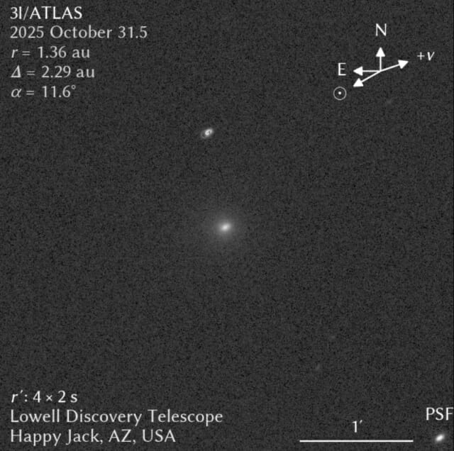 한 천문학자가 로웰 천문대의 강력한 디스커버리 망원경과 소형 망원경을 이용해 성간 혜성 '아틀라스 혜성(3I/ATLAS)'을 촬영했다고 과학전문매체 라이브사이언스가 3일(현지시간) 보도했다. 로웰 천문대 박사후 연구원 치청 장(Qicheng Zhang) 박사는 아틀라스 혜성의 사진을 촬영해 공개했다. 이 사진은 혜성이 근일점(태양에 가장 가까운 지점)을 지난 뒤 태양 뒤로 사라졌다 다시 나타난 모습을 촬영한 첫 광학 사진으로, 천문학계의 주목을 받고 있다. 근일점 도달 후 사라진 혜성, 다시 관측 그는 "처음에는 인상적이지 않게 얼룩처럼 보이겠지만 앞으로 며칠 동안 점점 더 뚜렷해질 것"이라고 밝혔다. 또, 이제 일반 망원경으로도 북반구 대부분 지역에서 이 혜성을 관측할 수 있을 것으로 예상된다고 덧붙였다. 성간 혜성 3I/ATLAS는 지난 7월 칠레에 있는 아틀라스(ATLAS, 소행성 충돌 최종 경보 시스템)를 통해 확인한 것으로 2017년 오우무아무아, 2019년 보리소프 혜성에 이어 3번째로 발견된 성간 천체다. 이 혜성은 시속 21만km가 넘는 속도로 태양계를 통과하고 있다. 지난 달 29일 이 혜성은 태양으로부터 1.4천문단위(AU)인 약 2억 1천만km 이내까지 접근하며 근일점에 도달했다. 이 과정에서 잠시 지구 시야에서 사라졌으나 이후 다시 관측 가능한 위치로 돌아왔다. 성간 방문자 관측 기회, 일주일 후부터 열려 로웰 디스커버리 망원경은 근일점 통과 직후에도 혜성을 지평선 가까이까지 관측할 수 있는 최대 규모의 망원경 중 하나로, 이번 관측에서 중요한 역할을 했다. 혜성은 현재 북동쪽 지평선에서 북쪽으로 이동 중이며, 장 박사는 “혜성이 지평선 바로 위에 있지만 태양이 아직 지평선 아래에 있어 하늘이 너무 밝지 않은 새벽녘에 혜성을 관측할 수 있다”고 밝혔다. 천문학자들은 이 성간 방문자가 우리 은하의 미지의 항성계에서 온 일반적인 혜성이라고 확신하고 있다. 3I/ATLAS 혜성은 지금까지 관측된 혜성 중 가장 오래된 것으로, 일부 연구에서는 태양계 보다 약 30억 년 더 오래되었을 것으로 추정하고 있다. 이제 혜성 3I/ATLAS가 밤하늘에 다시 모습을 드러내면 앞으로 몇 달 동안 새로운 연구가 활발하게 진행될 것으로 예상된다. 장 박사는 "혜성이 태양에서 빠르게 떠오르고 있다"며, "일주일 뒤에는 태양으로부터 25~30도 정도 멀어질 것으로 예상된다. 그때쯤이면 전 세계의 다른 대형 망원경들도 혜성을 추적하기 시작할 것"이라고 밝혔다. 장 박사와 그의 동료는 지난 달 말 논문 사전공개 사이트 '아카이브(arXiv)'에 혜성 3I/ATLAS가 근일점에 도달하기 전에 빠르게 밝아졌고, 태양보다 뚜렷하게 푸른빛을 띠었다는 연구 결과를 공개했다. 이런 특징은 가스 방출이 근일점 부근에서 혜성의 가시광 밝기의 상당 부분을 차지했다는 해석과 일치한다고 연구진은 밝혔다. 장 박사는 “혜성이 여전히 밝아지고 있을 가능성이 있지만, 이를 확실히 판단하려면 더 많은 데이터가 필요하다”고 설명했다.