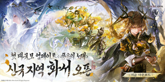 판 스튜디오는 신작 액션 RPG '듀엣 나이트 어비스'에 1.1버전 대규모 업데이트 '풍운의 노래·상'을 적용했다고 23일 밝혔다. 이번 업데이트로 신규 지역 '화서'가 개방됐으며 메인 스토리를 중심으로 한 콘텐츠도 추가됐다. 이에 이용자는 화서 초입을 시작으로 연진 나루터, 촉룡 제단 등 새로운 세계관을 경험할 수 있게 됐다. 이번 버전에서는 신규 캐릭터 '부소'와 '각주'가 새롭게 추가됐다. 부소는 물 속성의 치유형 캐릭터로 칼날 채찍과 활을 사용하는 전투 스타일을 지녔다. 각주는 빛 속성 캐릭터로 모든 무기 유형을 자유롭게 다루는 것이 특징이다. 두 캐릭터는 각각 전용 스토리 콘텐츠 '세월 모음집'을 통해 서사가 전개된다. 화서 버전에서는 외형·상점 콘텐츠가 대폭 확장됐다. 직접 구매를 선호하는 이용자가 더 할인된 방식으로 캐릭터를 획득할 수 있는 '뒤얽힌 마음' 패키지가 추가됐다. 부소의 한정 코스튬(수영복·치파오 등)과 무료 외형 콘텐츠를 비롯해 무기 코스튬, 전시 동작, 이펙트 외형도 선보였다. 플레이 환경도 개선됐다. 연진 나루터 전역에 멀티 구역이 추가됐으며, 멀티 전시 동작 상호작용 기능과 낮·밤 시스템도 도입된다. 또 캐릭터 조명, 빛의 반사와 물리적 특성을 계산해 사물의 재질을 시각화하는 기술(머티리얼 효과)를 최적화했다는 것이 회사 측의 설명이다. 모바일 버전은 안티앨리어싱과 렌더링 효과를 개선해 그래픽 품질을 높였다. PC와 모바일 전반에 걸쳐 렌더딩 품질, 조명 효과, 메모리 사용을 최적화했다. 이번 업데이트와 함께 스팀 버전도 정식 출시될 예정이다. 공식 팬아트 공모전 수상작도 공식 SNS 채널을 통해 공개되며, 커뮤니티와의 연계 활동 역시 강화된다. 이와 함께 다양한 이벤트도 실시한다. ▲출석 이벤트 '살구꽃의 그림자' ▲신규 지역 연계 이벤트 '화서의 향에 대하여' ▲몰입형 연극 콘텐츠 '부소' ▲멀티 플레이 이벤트 '루나의 스페셜 극장' ▲도전형 콘텐츠 '영혼의 새 증표' 등이 순차적으로 진행된다. 향후 일정에 따라 각주 중심 콘텐츠와 경쟁 이벤트 '정상을 향해'도 추가될 예정이다.