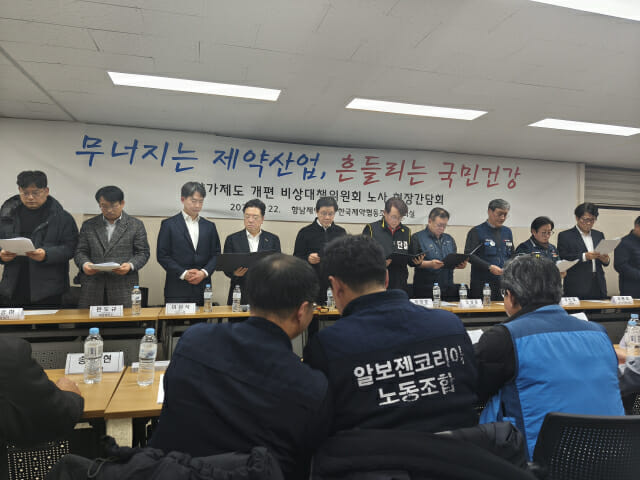 최근 정부가 추진 중인 약가 제도 개선 방안과 관련해 제약바이오 산업 노사가 한 목소리로 반대했다. 22일 오후 경기 화성 향남제약공단 한국제약협동조합 회의실에서 '약가제도 개편 비상대책위원회 노사 현장 간담회'가 열렸다. '산업 발전을 위한 약가제도 개편 비상대책위원회(이하 비대위)'와 한국노총 화학노련, 한국제약협동조합 등 20여 명의 제약사 기업 대표 및 공장장, 노조 조합원 17명 등이 참석했다. 이들 모두 약가제도 개편안의 전면 재검토를 요구하기 위해 이 자리에 모인 것이다. 이들은 '의약품 생산 최전선에서 드리는 호소문'을 통해 “제약바이오 산업 전체 종사자 12만 명 중 10% 이상의 실직이 불가피할 것으로 예상된다”라며 “생산설비 축소나 폐쇄 등이 잇따를 것”이라며 개편안의 전면 재검토를 요구했다. 노사 모두 개편안에 우려를 표하는 이유는 개편안에 포함된 제네릭(복제약) 가격을 40% 인하하겠다는 내용 때문이다. 보건복지부는 높은 제네릭 약가로 국내 제약바이오산업계가 신약 개발보다 제네릭에 집중하고 있다고 본다. 관련해 2023년 기준 완제의약품 기준 생산액 10억 원 미만 소형 업체 비중은 31.3% 가량이다. 최근 5년간 등재된 240개 신약 가운데 국내 개발 신약은 13개(5.4%)에 불과하다. 이러한 이유로 복지부는 제네릭 및 특허만료의약품 약가 산정률을 주요국 수준으로 조정하겠다는 입장이다. 기존 53.55%였던 것을 40%로 낮추겠다는 부분에 산업계가 반발하고 있는 것이다. 복지부는 지난해 11월 28일 건강보험정책심의위원회(건정심)에 개편안을 보고했고, 다음 달 건정심 의결 이후 7월부터 개편안을 시행한다는 방침이다. 비대위는 개편안이 시행되면 최대 3조 6천억 원의 피해가 발생할 것으로고 본다. 또 ▲국산전문의약품 생산 감소 ▲의약품 수급 불안 ▲고가 수입의약품 대체 가속화 ▲필수 및 퇴장방지의약품 등 채산성이 낮은 의약품 공급 중단 ▲저가 해외 원료 전환에 따른 국내 원료 산업 고사 ▲매출 급감에 따른 감원 등도 이어질 것으로 우려한다. "이대론 제약산업 다 죽는다" 노연홍 비대위 공동위원장(한국제약바이오협회장)은 개편안이 ▲제약바이오 산업 기반 붕괴 ▲일자리 축소 ▲필수 의약품 제조 위축 ▲향남의 고용불안 및 지역 경제 위축 등을 초래할 수 있다고 경고했다. 그는 “국민 생명과 직결된 필수의약품 생산이 위축되면 해외 약에 의존하게 될 것”이라며 “산업현장의 목소리를 외면한 정책은 성공하지 못한다”라고 말했다. 이어 “정부는 일방적 정책 추진이 아닌 산업, 노동, 국민을 위한 합리적 대책을 마련해야 한다”라고 강조했다. 이장훈 한국노총 화학노련 의약화장품분과 의장은 “약가제도 개편은 제약 산업 위축과 노동자 일자리에 심각한 우려를 낳는다”라며 “과거 약가 인하 정책 실패로 인해 제약사의 매출 감소와 연구개발 위축이 반복되어선 안 된다”라고 밝혔다. 그러면서 “제약 산업 노동자 일자리는 국민 건강권과 일치. 약가제도 개편안 전면 개편. 노동계와 함께하는 사회적 논의 기구가 필요하다”라고 목소리를 높였다. 조용준 비대위 부위원장(한국제약협동조합 이사장)도 “정부 개편안은 중소‧중견 제약사에 심각한 경영상 어려움을 발생시킬 수 있다”라며 “제네릭 40% 일괄 인하는 이미 4.8% 이익률로 버티는 기업에 심각한 악영향을 미친다”라고 주장했다. 이어 “중소‧중견 제약사는 제네릭이란 캐시카우가 끊기면 연구개발은커녕 채산성이 맞지 않은 필수의약품 생산부터 끊길 것”이라며 “정책은 숫자가 아닌 현장을 봐야 한다. 일방적인 정책 추진이 아닌 실질 피해를 파악해 정책에 적용해야 한다”라고 조언했다. 이와 함께 “좋은 정책도 급격한 변화는 생태계를 파괴할 수 있다”라며 “기업이 체질을 개선할 충분한 시간 줘야 한다. 제약 산업이 국제 경쟁력 갖추려면 규제보다 진흥의 관점이 필요하다”라고 전했다. 오상준 한국노총 화학본부 경기남부 의장은 “제약업계 노동자들은 전문의약품을 안정적이고 안전하게 만들어야 한다”라며 “약가 인하는 국민들의 약값 인하에 도움이 되지 않는다”라며 “중소기업은 약가 인하에 싼 원료를 쓸 수밖에 없다”라고 설명했다. 그는 “제약업계 노동자들도 고용불안에 시달릴 수 있다”라며 “정부는 무조건 밀어붙이지 말고 산업계 협회, 노동자와 상의 및 검토 이후 약가 정책을 시행해야 한다”라고 덧붙였다. 아울러 이 밖에도 전혜숙 경기도일자리재단 이사장(전 국회의원)은 현 상황을 '비상사태'에 빗댔다. 그는 “과거 급격한 약가 인하로 필수원료 및 필수의약품 붕괴 현상을 발생시켰다”라며 “약가 인하는 전문가와 산업계와 조율해서 점진적으로 결정해야 한다”라고 조언했다. 또 “복지부는 약가 인하가 아닌, K-제약바이오 산업 활성화를 위해 세제지원 발표가 필요하다”라며 “일부 제네릭 중 약가에 혼동을 주는 것은 다른 방법으로 잡아야 한다”라고 강조했다. 아울러 “약가 인하는 제네릭 이익으로 겨우 사는 국내 기업을 짓밟는 행위”라고 지적했다. 제네릭 중심 K-제약바이오 체질 개선 어떻게? 쟁점은 국내 제약산