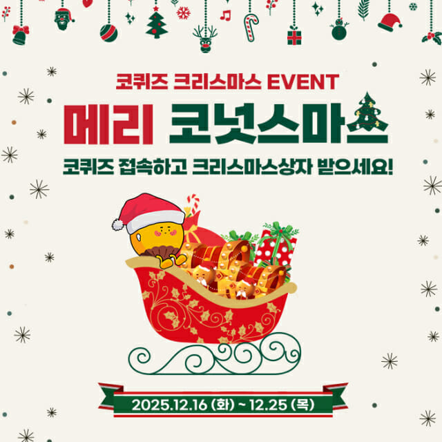 퀴즈형 앱테크 코퀴즈가 다가오는 크리스마스를 맞아 오는 25일까지 총 10일 간 크리스마스 특별 접속 이벤트를 진행한다고 16일 밝혔다. 이번 이벤트는 한 해 동안 코퀴즈를 이용한 사용자들에게 감사의 마음을 전하는 동시에 연말 시즌에 맞춘 특별 보상을 제공해 앱 내 참여도를 높이기 위해 마련됐다. 코퀴즈 크리스마스 이벤트의 핵심은 사용자가 매일 앱에 접속만 해도 특별 보상인 '크리스마스 코넛 상자'를 지급하는 것이다. 이 상자는 코퀴즈를 통해 얻는 기존 코넛 상자와 별도로 제공되는 스페셜 상자로, 사용자는 상자를 열때마다 '코넛코인(ConutCoin)'을 최소 10개에서 최대 100개까지 즉시 획득할 수 있다. 코퀴즈는 지식이 곧 자산이 되는 Quiz-to-Earn(퀴즈 풀고 보상 받기) 방식의 앱테크 플랫폼으로, 사용자들은 시사 상식, 금융경제, 암호화폐, 역사, 건강 등 다양한 분야의 퀴즈를 풀고 즉시 보상을 받을 수 있다. 단순한 리워드 앱을 넘어 지식 습득과 수익 창출을 동시에 할 수 있다는 점에서 MZ세대를 포함한 다양한 연령층에게 주목받고 있다. 특히 보상으로 지급되는 코넛코인은 코퀴즈를 핵심 기반으로 한 웹3 IP 코넛 생태계의 토큰으로 지난 6월 정식 출시됐다. 코퀴즈를 서비스 하는 대체불가능회사 이충 대표는 "올 한 해 코퀴즈와 코넛 생태계를 사랑해 주신 사용자들에게 따뜻한 크리스마스 선물을 드리고자 이번 이벤트를 준비했다. 매일 지급되는 크리스마스 상자를 통해 사용자들이 코넛코인의 가치를 체감하고, 앞으로 더욱 확장될 코퀴즈의 다양한 콘텐츠와 기능을 기대해 주시길 바란다"라고 전했다.