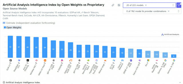 하정우 대통령실 AI미래기획수석이 정부 주도 '독자 인공지능(AI) 파운데이션 모델(K-AI)' 프로젝트에서 LG AI연구원이 개발 중인 'K-엑사원'의 글로벌 오픈웨이트(공개 AI모델) 평가 결과를 공개하며 국내 AI 생태계 강화에 대한 의지를 드러냈다. 하 수석은 11일 자신의 페이스북을 통해 "AAII(Artificial Analysis Intelligence Index)의 오픈웨이트 모델 순위에서 K-엑사원이 7위를 달성했다"고 밝혔다. 그는 "공개 AI 분야에서 중국 기업들의 활약이 두드러진 가운데, 우리도 그동안 축적한 민간 기업들 및 학계 역량에 대해 정부와 원팀이 돼 4개월 만에 의미있는 성과를 만들었다"고 평가했다. AAII는 AI 평가 전문 기관 아티피셜 애널리시스(Artificial Analysis)가 운영하는 글로벌 AI 성능 평가 플랫폼이다. 단일 시험이 아닌 다수의 공개 벤치마크 결과를 종합해 AI 모델의 성능을 비교·분석한다. AAII에 따르면 1~5위는 중국 AI기업 지푸, 딥시크, 문샷, 미니맥스, 샤오미 모델들이 각각 차지했다. 6위는 오픈AI의 OSS-120B가 올랐다. K-엑사원 뒤로는 국내에서 가장 널리 쓰이는 모델 중 하나인 알리바바 큐웬3, 엔비디아 네모트론3 등이 자리했다. K-엑사원 외에도 독자 AI 파운데이션 모델 사업 참여사인 네이버클라우드 등의 오픈모델이 AAII 톱(TOP) 15에 포함돼 있다. 앞서 네이버클라우드, 업스테이지, SK텔레콤, NC AI, LG AI연구원이 공개한 신규 모델들은 미국 비영리 AI 연구 기관인 에포크 AI에 전원 등재됐다. 이 모델들은 허깅페이스 트렌드 모델에 오르는 성과도 냈다. 하 수석은 "우리 AI 경쟁력이 미국, 중국에 이은 톱 3급"이라며 "조금씩 격차를 줄이고 있다는 것을 다시 한번 보여주는 사례"라고 말했다. 그러면서 "지난 4개월은 독자 AI 파운데이션 모델 확보를 위한 기반을 만드는 과정이었을 뿐"이라며 "의미있는 기술적 성과를 만든 상황"이라고 덧붙였다. 그는 이 과정에서 기업뿐 아니라 컨소시엄에 참여한 학생들도 대량의 데이터와 대규모 그래픽처리장치(GPU)를 활용 중이란 점을 강조했다. 또 이들이 실제 학습에서 알아가는 온갖 엔지니어링 문제를 맞닥뜨리고 해결하는 경험을 쌓기 시작했다고 설명했다. 하 수석은 "앞으로 진행될 프로젝트를 통해 우리 프런티어 AI 원천 기술력과 글로벌 오픈소스 AI 생태계 영향력도 강화하겠다"며 "이 기술들이 국민 일상생활에서 삶의 질을 향상하는 데 체감될 서비스로 이어지고 확산하도록 강력 지원하겠다"고 밝혔다.