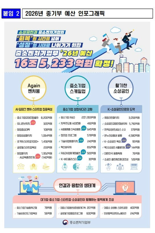 중기부 예산 16조 돌파...2026년 16.5조