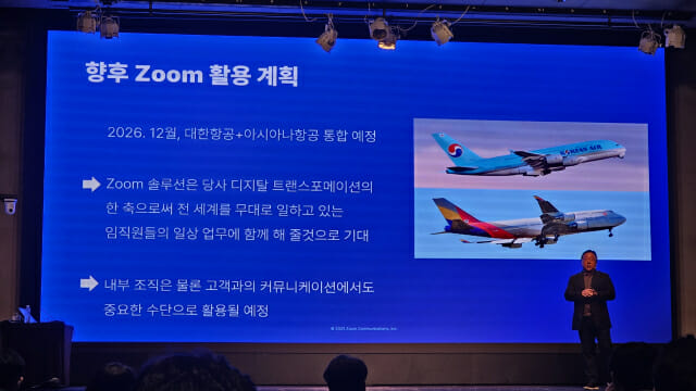 대한항공이 복잡했던 전 세계 지점 간 전화 시스템을 '줌 폰'으로 단일화했다. 이를 통해 장비 관리 부담을 줄이고, 해외 출장 등 운영 비용을 크게 절감할 수 있었다. 대한항공 이재훈 차장은 28일 서울 강남구 엘타워에서 열린 '줌토피아 온더 로드 서울' 행사에서 줌 폰 도입 배경과 성과를 소개했다. 대한항공은 지난해 말 국내 전 지점의 시스템 전환을 완료했다.이를 통해 온프레미스 기반 장비 유지 부담을 줄였고 해외 출장 등 운영 비용을 크게 절감할 수 있었다. 이런 성과를 바탕으로 올해 말까지 해외 250여 개 지점 전체에 줌 폰을 확대 적용할 계획이다. 이 차장은 "운영 효율이 크게 향상됐고, 경영진이 가장 만족한 부분은 총소유비용(TCO)이 줄었다는 점"이라며 "전체 통신 비용이 약 20% 절감됐다"고 밝혔다. 이어 "이전에는 오프라인 장비와 전용 회선이 얽힌 복잡한 구조로 인해 유지보수 인력과 출장 비용이 과도하게 소요됐다"며 "줌 폰 도입 이후 전화 회선과 장비 관리가 본사에서 중앙집중형으로 이뤄지고, 지점에서는 인터넷만으로 통화가 가능해졌다"고 설명했다. 또한 대한항공은 줌 컨택센터도 함께 도입해 내부 IT 헬프데스크와 현지 언어 예약센터 운영에 활용하고 있다. 기존에는 본사 콜센터가 처리하지 못하던 지역별 언어 고객 문의를 각 지점이 클라우드 기반으로 직접 응대할 수 있게 됐다. 이 차장은 "필리핀 따갈로그어, 베트남어, 스페인어 등 현지 언어로 고객 예약 전화를 처리할 수 있게 됐다"며 "업무 효율뿐 아니라 고객 경험 개선 효과도 크다"고 말했다. 대한항공은 줌 폰 도입을 통해 현장 직원들도 모바일 기기에 소프트폰을 설치해 언제 어디서나 회사 전화를 사용할 수 있는 환경을 구축했다. 기존에는 현장 직원이 개인 휴대폰으로 통화해야 했지만, 이제는 회사 통화망을 통해 비용 부담 없이 연결이 가능하다. 이 차장은 "해외 지점 확대를 마친 뒤에는 아시아나항공과 통합 프로젝트에 맞춰 줌 폰과 줌 컨택센터 환경을 일원화할 계획"이라며 "통합 이후에는 라이선스 규모와 사용자 수가 더 늘어날 것"이라고 밝혔다. 또 "줌이 제공하는 기능 업데이트가 빠르고 온라인 팩스 같은 새로운 서비스도 유용하다"며 "내년에는 내부 프로모션을 통해 직원들에게 줌 기능을 더 적극적으로 알리고 활용도를 높일 계획"이라고 말했다. 이번 행사는 글로벌 연례 컨퍼런스 '줌토피아'의 연장선상에서 진행된 오프라인 행사다. 줌은 이번 행사를 통해 하이브리드 근무, 고객 상담, 스마트 오피스, 그리고 AI 기반 협업 혁신을 중심으로 자사의 새로운 제품과 기술 비전을 직접 소개했다. 줌 세르히오 아길레라 아시아태평양 솔루션 엔지니어링 총괄은 "줌은 이제 단순한 화상회의 솔루션이 아니라, AI 중심의 협업 생태계로 진화하고 있다"며 "AI를 통해 사람과 사람을 연결하는 것이 줌의 본질적인 목표"라고 비전을 제시했다. 이어 "줌 폰은 2년 만에 1천만 명 이상의 유료 사용자를 확보했고, 줌 컨택센터는 출시 3년 만에 글로벌 시장에서 경쟁력을 입증했다"고 덧붙였다. 이어 줌코리아 오인호 전무는 'AI 컴패니언 3.0'의 주요 기능을 소개하며 "AI와 플랫폼의 결합이 줌의 핵심 방향"이라고 강조했다. 그는 "AI 컴패니언은 회의 요약과 문서 작성은 물론 일정 분석, 맞춤형 미팅 제안, 자동 노트 기록까지 지원한다"며 "AI가 사용자의 의도를 이해하고 능동적으로 업무를 지원하는 에이전트형 도구로 발전하고 있다"고 설명했다. 이번 행사에서는 '하이브리드 워크플레이스', '통합 커뮤니케이션 및 고객 상담', '스마트 오피스' 등 주제별 트랙이 마련돼 실제 구현 사례가 소개됐다. 줌 캐시 염 아시아태평양 지역 마케팅 총괄은"이번 '줌토피아 온더 로드 서울'은 한국 시장의 목소리를 직접 듣고, 현지화된 AI 기반 협업 생태계를 구축하기 위한 중요한 발판"이라며 "기업 고객뿐 아니라 교육, 공공, 의료 등 다양한 산업 분야로 협업 혁신을 확장할 것"이라고 밝혔다.