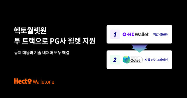 헥토월렛원이 전자지급결제대행(PG) 업계 디지털자산 지갑(월렛) 도입 가속화를 위해 '오하이(O-HI)월렛'과 '옥텟 WaaS(Wallet as a Service)'을 활용한 투트랙 전략을 시행한다고 29일 밝혔다. 현행 규제를 준수하며 오하이월렛으로 서비스를 시작해 역량을 쌓고 추후 옥텟을 이용해 디지털자산 결제 인프라 내재화까지 이어지는 로드맵이다. 현재 스테이블코인 결제, 정산을 검토 중인 PG사들은 가상자산사업자(VASP) 라이선스 미보유와 기술적 장벽으로 서비스 도입에 어려움을 겪고 있다. 헥토월렛원은 시장의 페인 포인트를 해결하기 위해 옥텟 WaaS 기반의 단계별 로드맵을 제공한다. 이를 통해 PG사는 초기 리스크를 최소화하면서 최종적으로는 월렛 기술을 내재화할 수 있다는 것이 회사 측 설명이다. '옥텟(Octet)'은 디지털자산 지갑 개발 애플리케이션프로그래밍인터페이스(API) 서비스다. 지갑 생성, 키 관리, 자산 모니터링 등 개발, 보안, 관리 시스템이 서비스형 소프트웨어(SaaS)로 제공된다. 회사 측에 따르면, 헥토월렛원은 최소한의 리소스로 연동 가능한 기업용 인앱 지갑 '오하이월렛'을 활용해 PG사 가맹점의 스테이블코인 입출금을 지원 중이다. 제도 완비 후에는 '옥텟 WaaS'를 통해 PG사가 직접 월렛 서비스를 구축하고 운용할 있도록 마이그레이션(이전)이 가능하다.