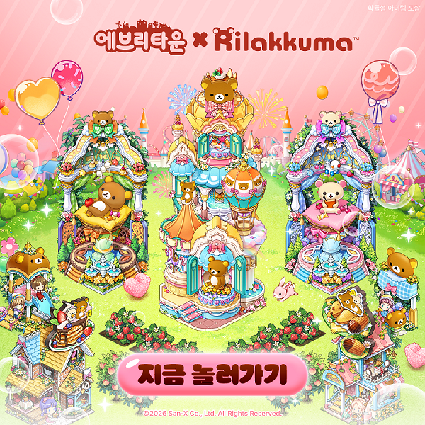 위메이드맥스(각자대표 손면석, 이길형)는 위메이드커넥트(대표 이호대)가 서비스하는 모바일 힐링 SNG '에브리타운'과 인기 캐릭터 '리락쿠마'와의 협업 프로모션을 실시한다고 2일 밝혔다. 이번 협업은 다음 달 31일까지 진행되며, 리락쿠마 IP와 국내 모바일 게임이 협업하는 최초의 사례다. 프로모션 기간 동안 에브리타운은 리락쿠마 캐릭터와 연계한 신규 콘텐츠와 다채로운 시즌 혜택을 선보인다. 먼저 테마파크, 스페셜타워, 리조트, 타운빌딩 등 리락쿠마와 코리락쿠마 콘셉트의 신규 건물 및 오브젝트 16종이 추가된다. 또한 협업를 기념하는 이벤트 생산품으로 리락쿠마 인형과 코리락쿠마 인형 아이템도 만나볼 수 있다. 온·오프라인 리워드를 제공하는 다양한 이벤트도 운영된다. 인게임 재화인 시드(SEED)를 비롯해 무드등, 네이버페이 포인트, 배달 앱 기프티콘 등을 획득할 수 있는 응모 이벤트가 진행된다. 이와 함께 리락쿠마 인형을 제공하는 이벤트 출석부와 타운 꾸미기 이벤트 등도 함께 마련됐다. 이번 협업 기간에는 에브리타운 론칭 13주년과 설 명절을 기념하는 연계 프로모션이 동시에 실시된다. 다양한 인게임 재화가 포함된 무작위 박스를 얻을 수 있는 13주년 축제 초대장 아이템이 추가되며, 설 연휴 기간 중 게임 플레이에 따른 리워드를 지급하는 접속 이벤트도 진행될 예정이다. 이호대 위메이드커넥트 대표는 “리락쿠마 캐릭터가 가지고 있는 따뜻하고 편안한 감성이 에브리타운과 만나 긍정적인 시너지를 낼 것으로 기대한다”며 “앞으로도 이용자들이 다채로운 재미를 느낄 수 있는 다양한 협업 프로모션을 기획하겠다”고 전했다.