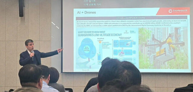 "인공지능(AI) 반도체 성장이 지속되면서 삼성전자와 SK하이닉스의 수혜는 당분간 지속될 것으로 예상됩니다." 마크 아인슈타인 카운터포인트리서치 애널리스트는 12일 서울 섬유센터에서 열린 '카운터포인트 2026 테크트랜드' 세미나에서 이같이 말하며 내년 산업 동향을 제시했다. 그는 "AI 생태계의 매출액은 매해 급증하지만 매출 80%가 AI 인프라와 반도체에 집중되어 있다"며 "AI 모델 및 프레임 워크는 4%에 불과한 수준"이라고 말했다. 이어 "AI인프라 경쟁력은 향후 소버린 AI 및 각국의 AX 프로젝트의 성패를 좌우하는 핵심요인이 될 것"이라며 "에이전틱 AI의 부상으로 지금까지 존재하지 않았던 새로운 수익 모델이 등장할 것"이라고 덧붙였다. 이날 세미나에는 국내 주요 기업 및 증권사 관계자들이 참석해 AI, 로보틱스, 반도체, 스마트폰 등 미래 기술 생태계 변화에 대한 관심을 보였다. 카운터포인트는 이번 세미나를 통해 ▲스마트폰 시장의 중장기 전망 ▲메모리·파운드리 산업의 글로벌 경쟁 구도 ▲AI 확산에 따른 산업 재편과 새로운 비즈니스 기회 ▲로봇 및 XR/MR 글라스 등 차세대 성장 분야 전망과 전략 등을 분석했다. 반도체 세션에서는 내년 메모리 가격 전망이 참여자들의 큰 관심을 끌었다. 카운터포인트 측은 "내년 D램 가격이 50% 이상 상승할 것"이라며 "레거시 D램 공급 또한 매우 제한적일 것"이라고 내다봤다. 또한 AI 확산으로 메모리 시장의 경쟁이 한층 더 치열해질 것으로 전망했다. SK하이닉스는 올해 1분기 창사 이래 처음으로 글로벌 D램 시장 1위를 기록했다.