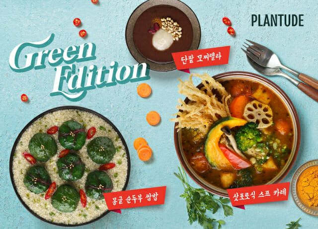 풀무원푸드앤컬처가 식물성 외식 브랜드 '플랜튜드'에서 지속가능식생활 콘셉트 신메뉴 3종을 출시했다. 지속가능식생활 식단 경진대회 수상작을 바탕으로 메뉴를 개발해, 회사가 추진하는 지속가능식생활을 외식 경험으로 확장하겠다는 취지다. 9일 풀무원에 따르면 플랜튜드는 식물성 식재료를 기반으로 건강하고 지속가능한 식문화를 제안하는 브랜드다. 계절성과 식문화 흐름을 반영한 순 식물성 메뉴를 선보이며, 일상에서 실천 가능한 채식 경험을 제공하고 있다고 회사는 설명했다. 이번 신메뉴는 '그린 에디션'을 콘셉트로, 지난해 12월 마무리된 '2025 지속가능식생활 식단 경진대회' 수상작에서 출발했다. 이 대회에는 임직원과 조리 전공 대학생 등이 참여해 총 150여 개 식단이 출품됐다. 우수 식단은 위탁급식 사업장 '헬시데이' 프로그램을 통해 주 1회 고객 식단으로 제공돼 왔고, 플랜튜드는 이를 외식 메뉴로 재해석해 매장 메뉴로 올렸다. 신메뉴는 ▲몽글 순두부 쌈밥(1만 2000원) ▲삿포로식 스프 카레(1만 6500원) ▲단팥 모찌렐라(8000원) 등 3종이다. '몽글 순두부 쌈밥'은 몽글 순두부와 적근대·깻잎으로 감싼 귀리·율무 주먹밥을 한입 크기로 구성했고, '삿포로식 스프 카레'는 뭉근한 카레 소스에 구이·튀김으로 조리한 제철 채소를 더했다. '단팥 모찌렐라'는 팥앙금과 찹쌀을 끓여낸 디저트 팥죽에 모찌를 넣어 식사 후 가볍게 즐기도록 설계했다. 판매는 매장별로 순차 적용된다. 코엑스점은 지난 5일부터 판매를 시작했으며 용산점은 9일부터, 고덕점은 오는 13일부터 신메뉴를 판매한다. 출시 기념 이벤트도 연다. 플랜튜드 3개 매장에서 신메뉴를 주문한 뒤 개인 인스타그램에 인증샷과 지정 해시태그를 올리면, 풀무원지구식단 '두유퐁당 크럼블 휘낭시에(32g)'를 증정한다. 매장별 준비 수량 소진 시까지 운영한다는 방침이다. 풀무원푸드앤컬처는 2022년 코엑스점을 시작으로 2023년 용산점, 2025년 고덕점까지 플랜튜드 3개 매장을 운영 중이다. 올해 1월 기준 누적 방문객은 48만2000명, 누적 메뉴 판매는 60만1000개를 돌파했다고 밝혔다.