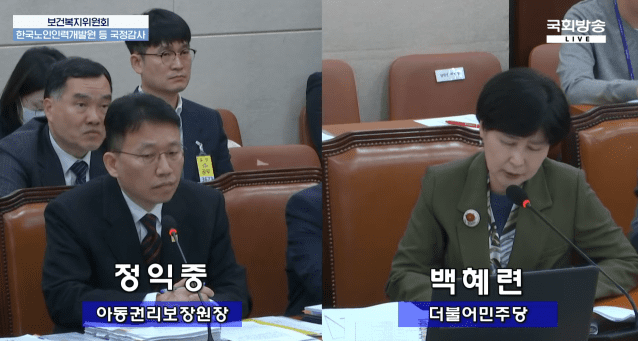 아동권리보장원이 입양기록 전산화 검수를 소홀히 한 직원에 대한 보건복지부의 경징계 요구를 무시하고 단순 주의만을 준 것으로 나타나 '제 식구 감싸기'란 비판에 휩싸였다. 한국노인인력개발원‧한국사회보장정보원‧한국보건복지인재원‧한국장애인개발원‧한국사회복지협의회‧아동권리보장원‧한국자활복지개발원‧중앙사회서비스원 등에 대한 국정감사가 28일 개최됐다. 아동권리보장원의 입양 기록 전산화 부실 논란 이후 보건복지부는 감사를 시행, 과다집행금 회수 및 업체 제재, 검수자 징계 및 수사 의뢰 8건, 기관 경고와 개선 조치를 요구했다. 하지만 개선은 미미하다는 것이 더불어민주당 백혜련 의원의 지적이다. 백 의원이 복지부로부터 제출받은 감사처분요구서에 따르면, 아동권리보장원은 검수 소홀로 인한 기관 손실을 초래한 직원은 경징계 이상 징계할 것을 요구받았다. 하지만 아동권리보장원은 해당 직원에 대해 '불문 경고'만을 내렸다. 이는 징계가 아닌 단순 내부 주의 조치로, 인사 기록에도 남지 않는다. 복지부가 요청한 경징계는 감봉이나 견책 등이 있다. 이에 그치지 못한 처분이라는 것이 백 의원의 지적이다. 백 의원은 “복지부가 공식적으로 징계를 요청했음에도 왜 불문 경고를 했느냐”라고 묻자, 정익중 아동권리보장원장은 “기관의 책임도 같이 있고 징계위원회의 결정”이라고 해명했다.