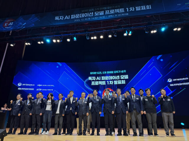 정부가 글로벌 인공지능(AI) 패권 경쟁을 위해 진행 중인 '독자 AI 파운데이션 모델' 프로젝트의 첫 번째 결과물이 공개됐다. 과학기술정보통신부(이하 과기정통부)와 정보통신산업진흥원(NIPA)은 서울 코엑스 오디토리움에서 '독자 AI 파운데이션 모델 프로젝트 1차 발표회'를 개최했다고 30일 밝혔다. 행사에는 네이버클라우드, 업스테이지, SKT, NC AI, LG AI연구원 등 국내 AI 산업을 이끄는 5개 정예팀이 참석해 그동안의 개발 성과를 공유했다. 현장에는 산·학·연 관계자와 일반 시민 등 1천여 명이 몰렸다. 이번 프로젝트는 글로벌 빅테크에 종속되지 않는 독자적인 AI 기술력을 확보하고 'AI 강국'으로 도약하기 위한 범국가적 도전의 일환이다. 배경훈 과기정통부 부총리, 하정우 대통령실 AI미래기획수석, 임문영 국가AI전략위원회 상근 부위원장 등 정부 핵심 인사들이 총출동해 민간의 도전에 힘을 실었다. 배경훈 부총리는 축사를 통해 "AI 모델 개발에 매진해 온 정예팀 모두가 승자"라며 "이번 도전은 대한민국 경제·사회 전반의 AX(AI 대전환)를 완성하는 결정적 동력이 될 것"이라고 강조했다. 발표회에서는 5개 정예팀이 개발한 1차 AI 모델이 공개됐다. 각 팀은 최신 글로벌 모델과 견주어도 손색없는 성능 지표를 제시해 이목을 끌었다. 네이버클라우드, 업스테이지, SKT, NC AI, LG AI연구원은 단순한 모델 개발을 넘어 전 산업 분야에 AI를 접목하는 구체적인 확산 전략도 함께 발표하며, 실질적인 AI 생태계 조성에 대한 의지를 다졌다. 행사장 로비에 마련된 체험 부스 열기도 뜨거웠다. 관람객들은 정예팀들이 개발한 AI 모델을 직접 시연해보고 피드백을 주고받았으며, 함께 전시된 파트너사들의 연계 서비스를 통해 확장된 AI 생태계를 직접 체험했다. 과기정통부는 이번 발표회 내용을 바탕으로 내년 1월 중 1차 단계평가를 진행해 정예팀들의 성과를 점검하고 향후 지원 방향을 구체화할 계획이다. 하정우 AI수석은 "국내 AI 기업들의 경쟁력이 글로벌 수준으로 빠르게 향상되고 있음을 확인했다"며 아시아의 AI 수도로 도약하기 위한 전폭적인 지원을 약속했다.
