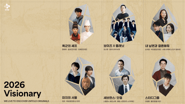 CJ ENM이 '폭군의 셰프', '보이즈2플래닛', '세브란스: 단절', '내 남편과 결혼해줘', '미지의 서울', '스터디그룹' 등을 새해 비저너리로 선정했다고 27일 밝혔다. CJ ENM '비저너리'는 2020년부터 K엔터테인먼트 산업에 새로운 비전을 제시하는 인물이나 작품을 선정하는 독창적 시상식이다. 올해는 업계에 의미 있는 시작을 보여준 '캐릭터'와 '캐릭터 빌더'에 초점을 맞췄다. 전 세계인에게 오래 사랑받으며 다양한 장르와 플랫폼으로 확장되는 '캐릭터'가 IP 경쟁력의 핵심이며, 지속 가능한 K콘텐츠 생태계의 토대이기 때문이다. 2026 비저너리는 지난해 방송, 영화, 음악, OTT 등 전 분야의 CJ ENM IP를 대상으로 심사를 진행했다. 흥행 성과, 플랫폼 기여도, 대중 인지도 등을 기준으로 1차 평가를 거친 뒤, CJ ENM 선정 위원회 20여 명의 심층 리뷰를 통해 'IP 지속가능성'과 '캐릭터 임팩트'를 중심으로 최종 수상자를 선정했다. 지난해 K드라마 최고 흥행작 '폭군의 셰프'는 전 세계 시청자를 사로잡으며 넷플릭스 글로벌 TV쇼(비영어) 부문에서 2주 연속 1위, 10주 연속 톱10에 올랐다. 배우 임윤아와 이채민이 연기한 '연지영'과 '이헌' 캐릭터는 진심 어린 요리로 공감을 이끌었고, 선악을 넘나드는 로맨스를 선보였다. 장태유 감독은 한국의 맛과 감성을 전면에 내세워 문화의 장벽을 넘어선 공감대를 이끌어낸 크리에이터로 '2026 비저너리'에 선정됐다. '보이즈2플래닛'은 엠넷플러스를 통해 전 세계 223개 국가 및 지역의 팬들이 참여해 K팝의 새로운 아이콘을 탄생시켰다. 8인조 그룹 '알파드라이브원'은 데뷔 앨범 밀리언셀러를 기록하며 슈퍼 루키로 자리매김했다. 김신영 프로듀서는 전 세계 수백만 팬의 선택을 하나의 서사로 엮어낸 크리에이터로 인정받아 비저너리로 이름을 올렸다. 피프스시즌이 제작한 '세브란스: 단절'은 독창적인 세계관과 스토리텔링이 빛나는 프리미엄 시리즈다. 이 작품은 제77회 프라임타임 에미상에서 단일 작품 최다인 27개 부문 후보에 올랐고, 여우주연상을 포함해 총 8개 부문을 수상했다. 한국과 일본에서 각각 선보인 '내 남편과 결혼해줘'는 한국 IP의 확장성과 정교한 현지화 역량을 동시에 입증했다. 특히 일본판은 공개 직후 한 달 동안 역대 아마존 오리지널 드라마 중 일본에서 가장 많은 시청자 수를 기록하며 신드롬을 일으켰다. 사토 타케루가 연기한 '스즈키 와타루'는 복수를 미래 지향적으로 재해석했고, 박민영이 맡은 '강지원'은 운명을 스스로 개척하는 K복수 서사의 정점에 섰다. 스튜디오드래곤 손자영 프로듀서는 단순한 리메이크를 넘어 각국 시청자에 맞춘 기획 제작 역량으로 글로벌 경쟁력을 입증했다. '미지의 서울'은 미국 시사 주간지 타임이 선정한 '2025 최고의 K드라마' 중 하나로 “서로 다른 상황의 캐릭터들이 이야기에 보편성을 부여하며, 포용성과 깊은 울림을 전한 작품”으로 평가받았다. 특히 배우 박보영의 '미지'와 '미래' 캐릭터는 연대와 성장의 아이콘으로 등극했고, 수많은 명대사로 시청자에게 울림을 전한 이강 작가는 또 하나의 인생작을 탄생시킨 크리에이터로 주목받았다. 티빙 오리지널 '스터디그룹'은 아시아 최대 콘텐츠 시상식 2025 AACA에서 '스트리밍 오리지널 최우수 작품상(극영화 부문)'을 수상했다. 황민현이 연기한 '윤가민'은 원작을 찢고 나온 존재감으로 큰 사랑을 받았고, 이장훈 감독은 'K학원 액션물'의 글로벌 가능성을 발굴한 크리에이터로서 비저너리의 주인공이 됐다 CJ ENM 관계자는 “2025년 한 해 동안 방송, 음악, 플랫폼, 글로벌 등 다양한 분야에서 새로운 시도를 이어가며 CJ ENM만의 독창적인 캐릭터와 스토리로 전 세계를 사로잡았다”며 “글로벌 IP 파워하우스로서 앞으로도 세계 시장에서 사랑받는 IP를 지속적으로 선보이고, 지속 가능한 K콘텐츠 산업의 미래 비전을 제시하겠다”고 말했다.