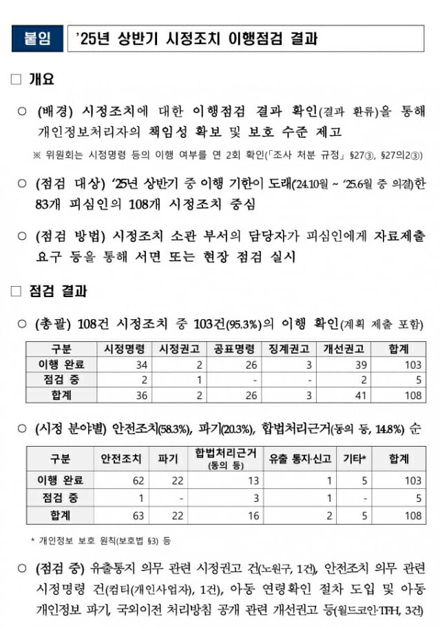 개보위 시정명령 받은 108곳 이행률 95%...메타 등 포함
