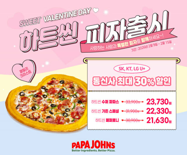 파파존스, 발렌타인데이 맞아 '하트씬 피자' 판매한다